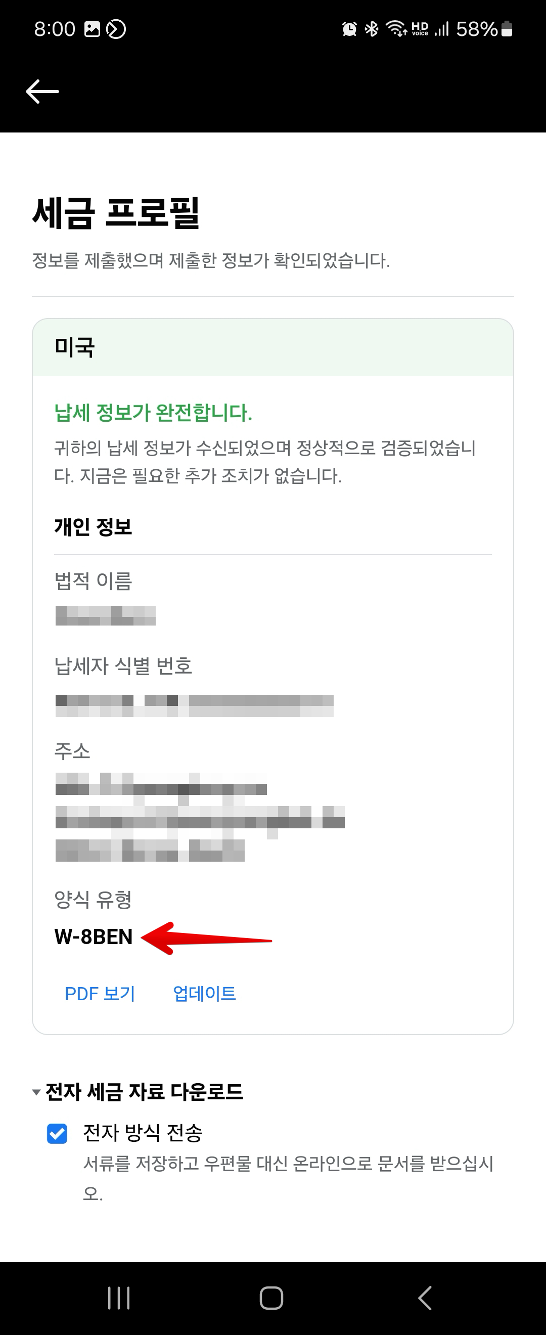 끝에 보면 양식 유형으로 W-8BEN 양식이라고 돼 있는데요. W-8BEN 세금 양식은 구글 애드센스에서도 쓰이는 양식으로서, 미국 외 국가의 개인이 주로 사용하는 양식이며 조세 조약 혜택을 신청할 때도 사용되는 양식입니다.