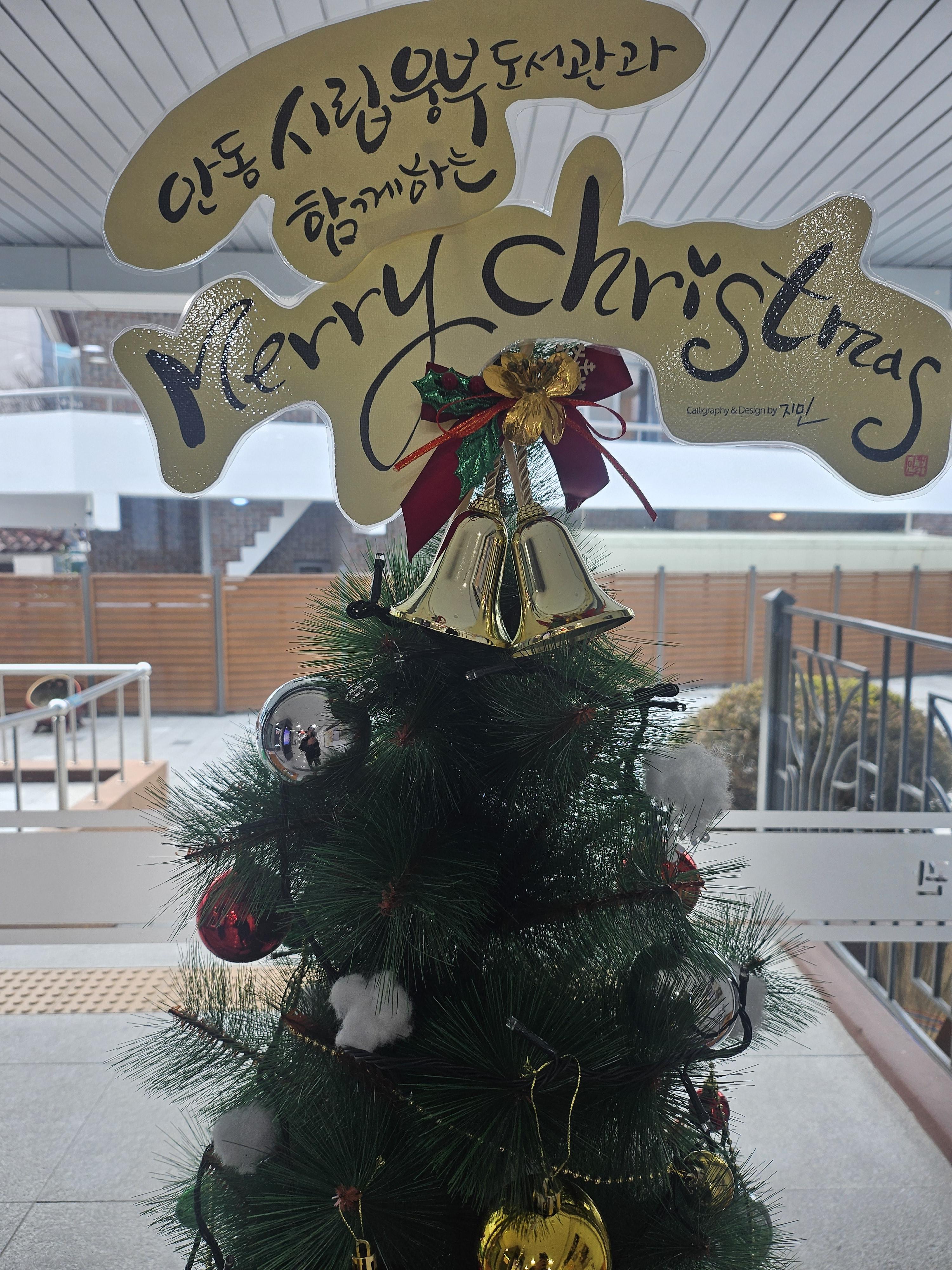 강의 커리큘럼의 마지막쯤인 겨울쯤 되니까 도서관에도 크리스마스 트리가 들어섰더라고요. 안동시립웅부도서관과 함께하는 메리크리스마스라는 글귀가 참 인상깊었어요.