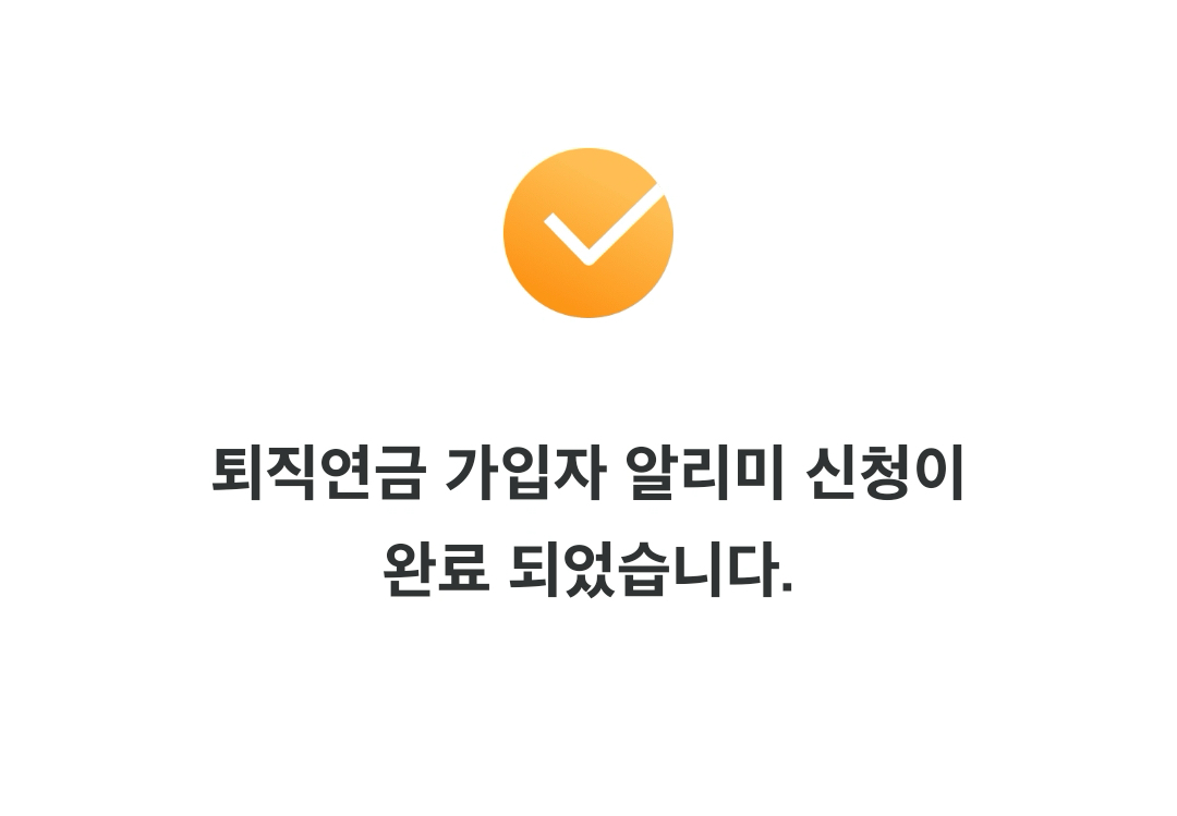 2가지 항목 모두 등록해주면 퇴직연금 가입자 알리미 신청이 완료되었다고 나오면서 이제 ETF 매수가 가능합니다.(그전에는 매수 불가능)