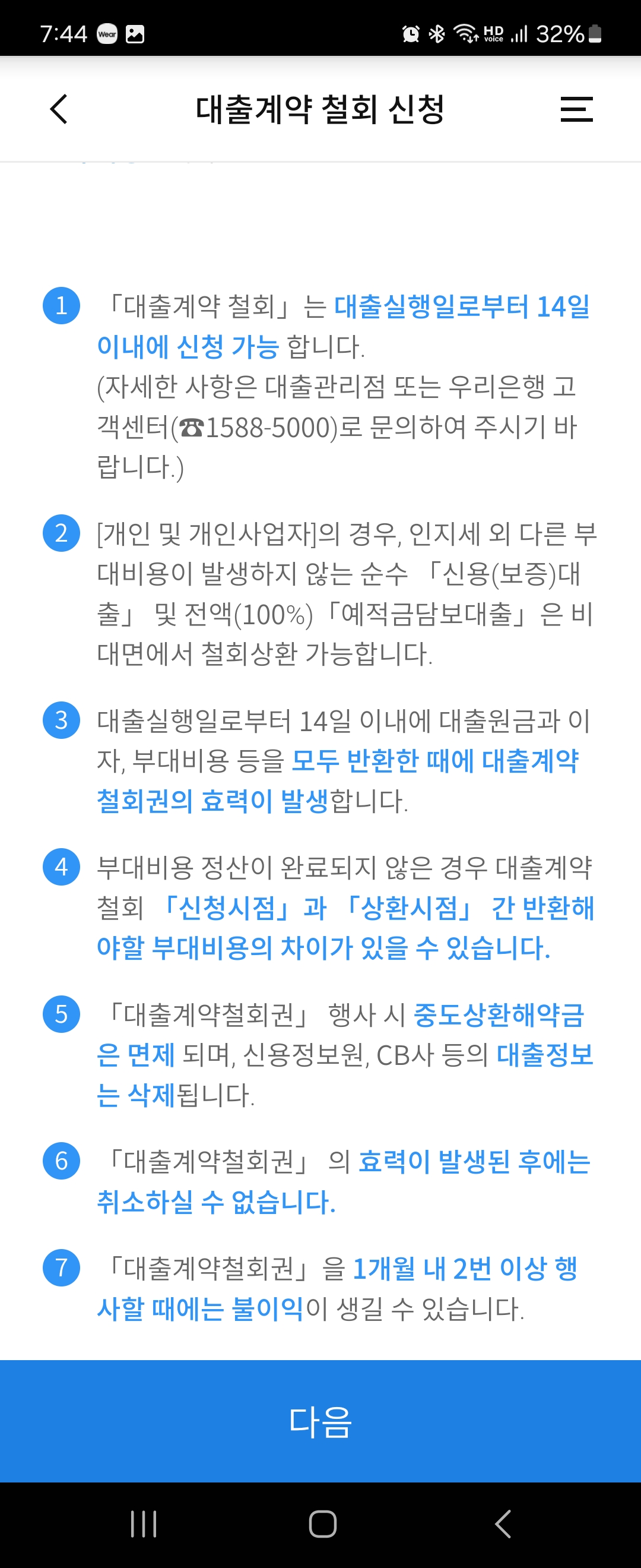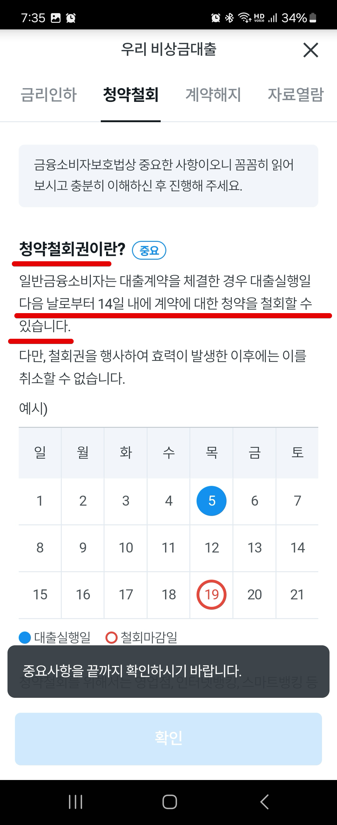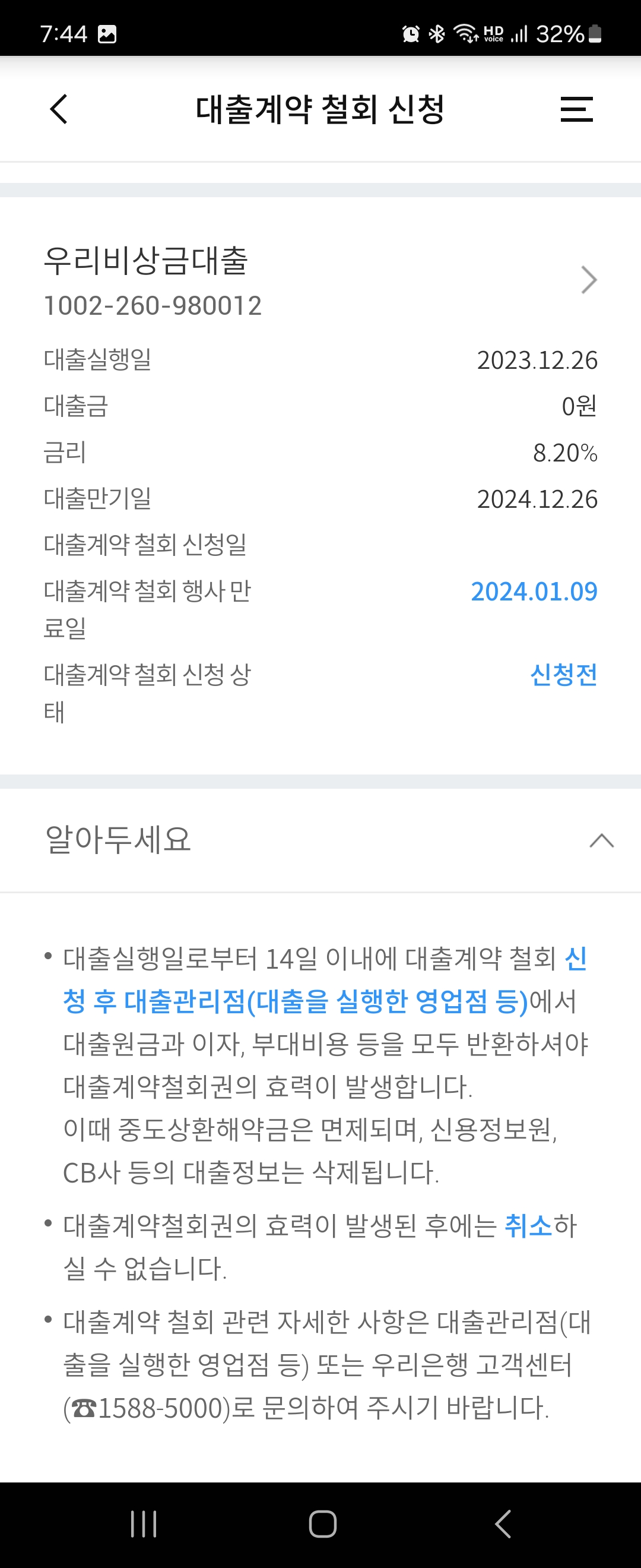 우리은행 비상금대출 대출계약철회 하기