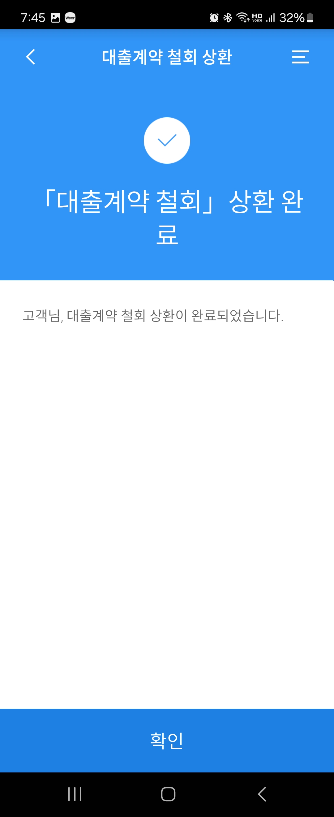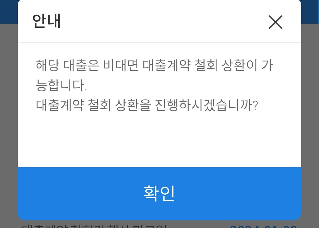 보통 여기까지하면 끝난것 같은데 아직 끝이 아닙니다. 여기까지는 대출계약에 대한 철회 신청을 한 것이고, 실제로 대출계약 철회가 된 것은 아니기 때문에 마지막으로 대출계약 철회를 해주어야합니다.