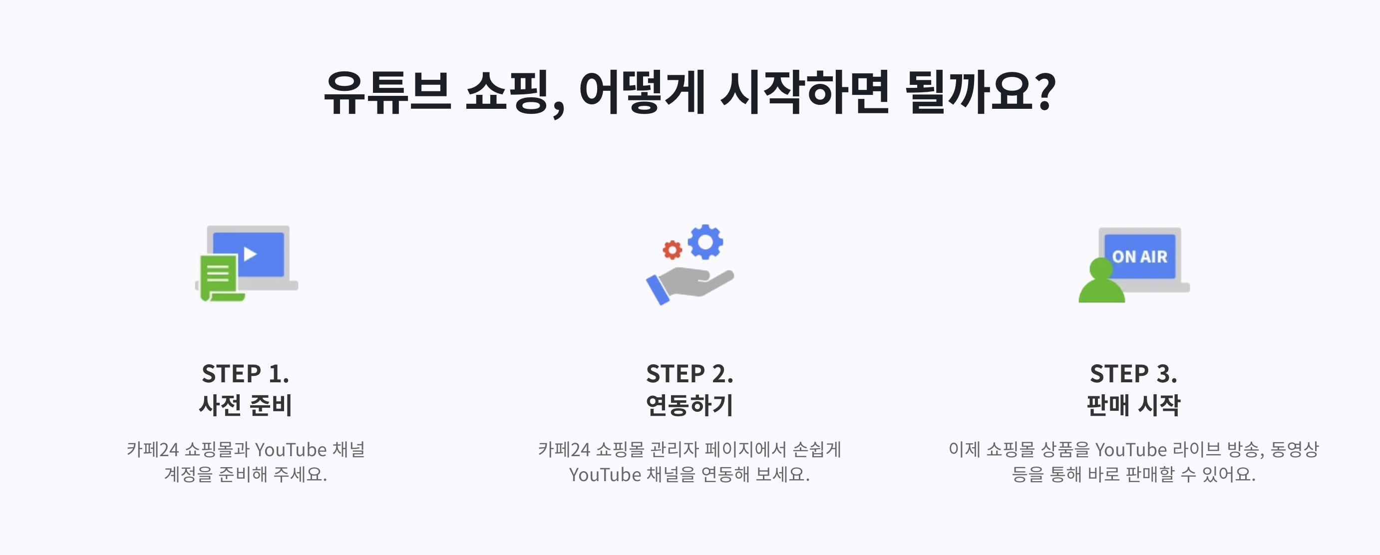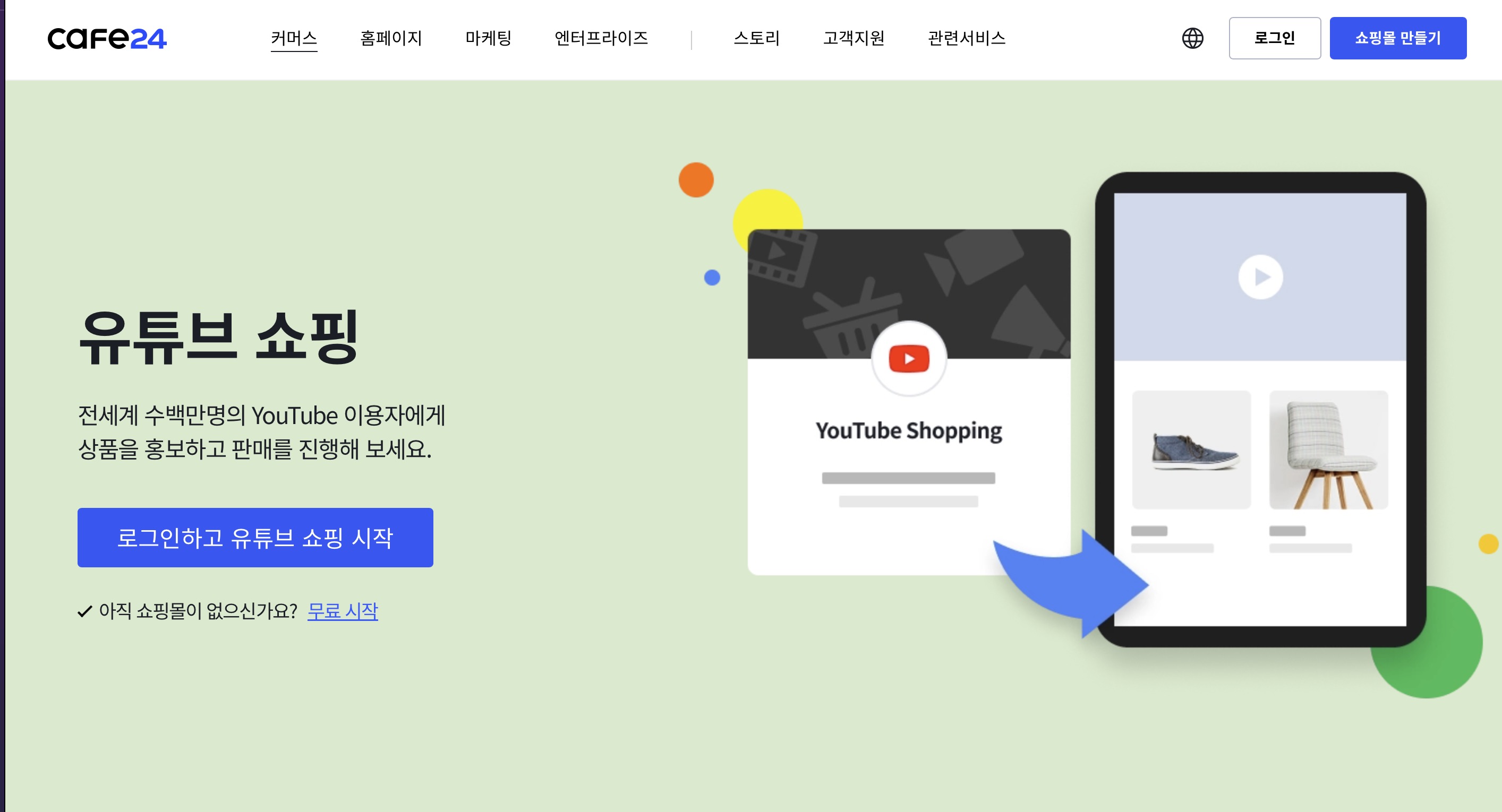 유튜브 쇼핑의 경우 카페24에서 손쉽게 시작할 수 있습니다. 별도의 쇼핑몰을 만드는게 과거보다 엄청 쉬워졌고 편의성도 많이 개선이 되었습니다. 이제는 제품을 널리 알릴 수 있는 콘텐츠와 판매할 경쟁력 있는 상품이 있는게 중요하며 판매할 쇼핑몰이 없는건 아무 문제도 아닌 시대가 된 것 같습니다.