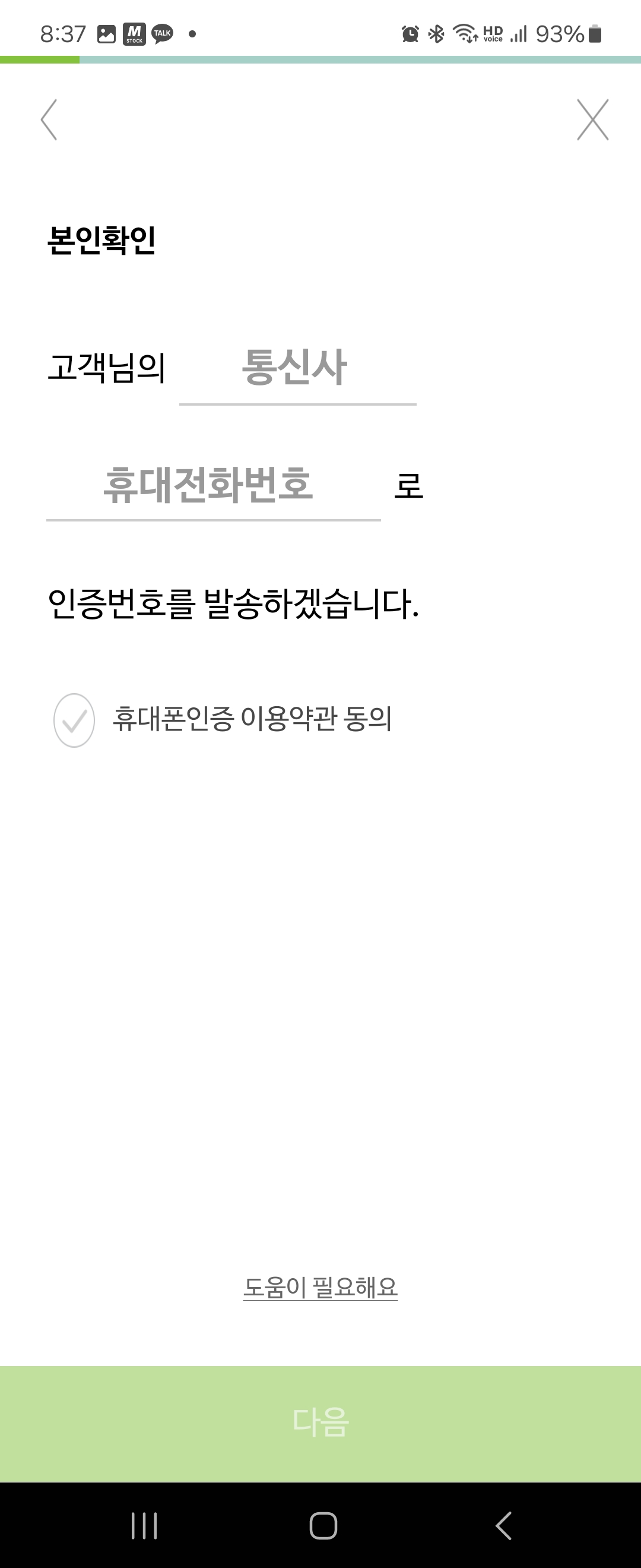 고객명과 주민등록번호 넣어주시고요. 통신사와 전화번호를 통해 인증 받아주시고 아래쪽에 [빠른 개설] 클릭하면 됩니다.