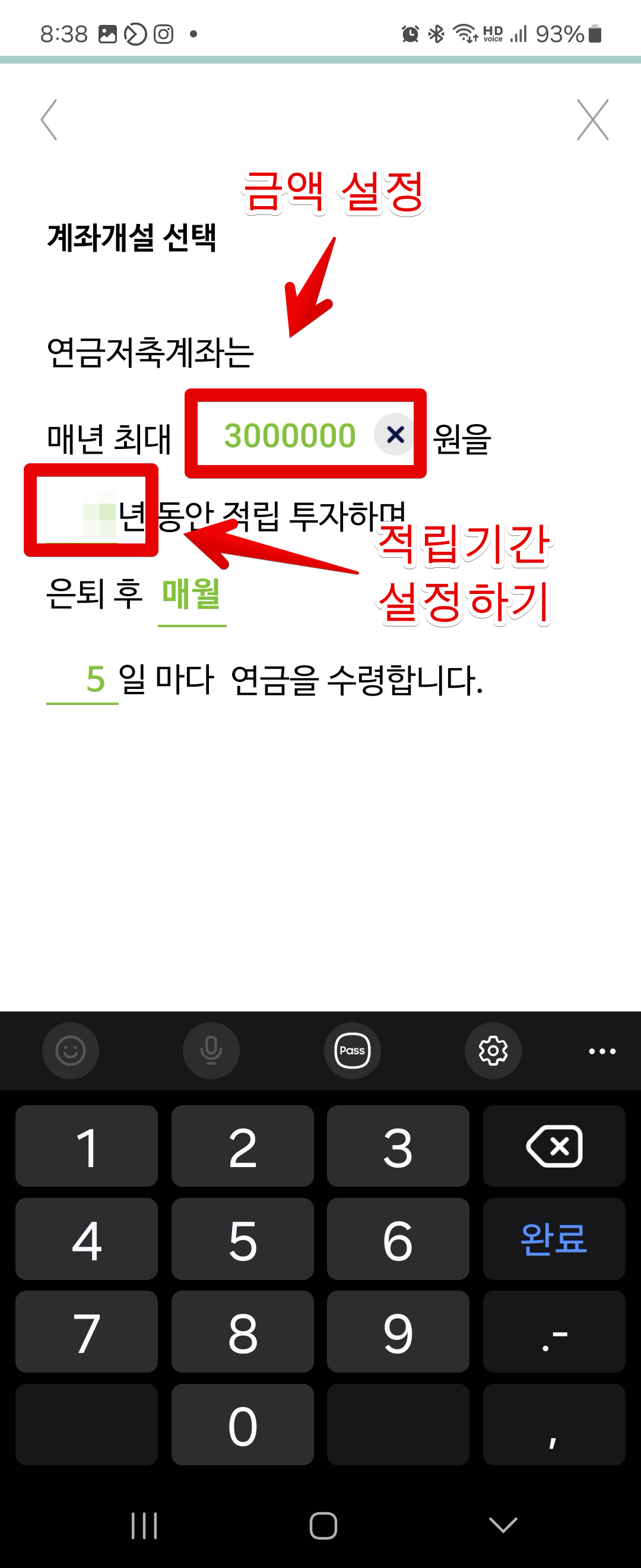 저같은 경우, 현재 만나이를 기준으로 만 55세에 연금개시를 한다고 가정하고, "55-현재 만나이"를 계산해서 그 기간으로 입력해주었습니다.