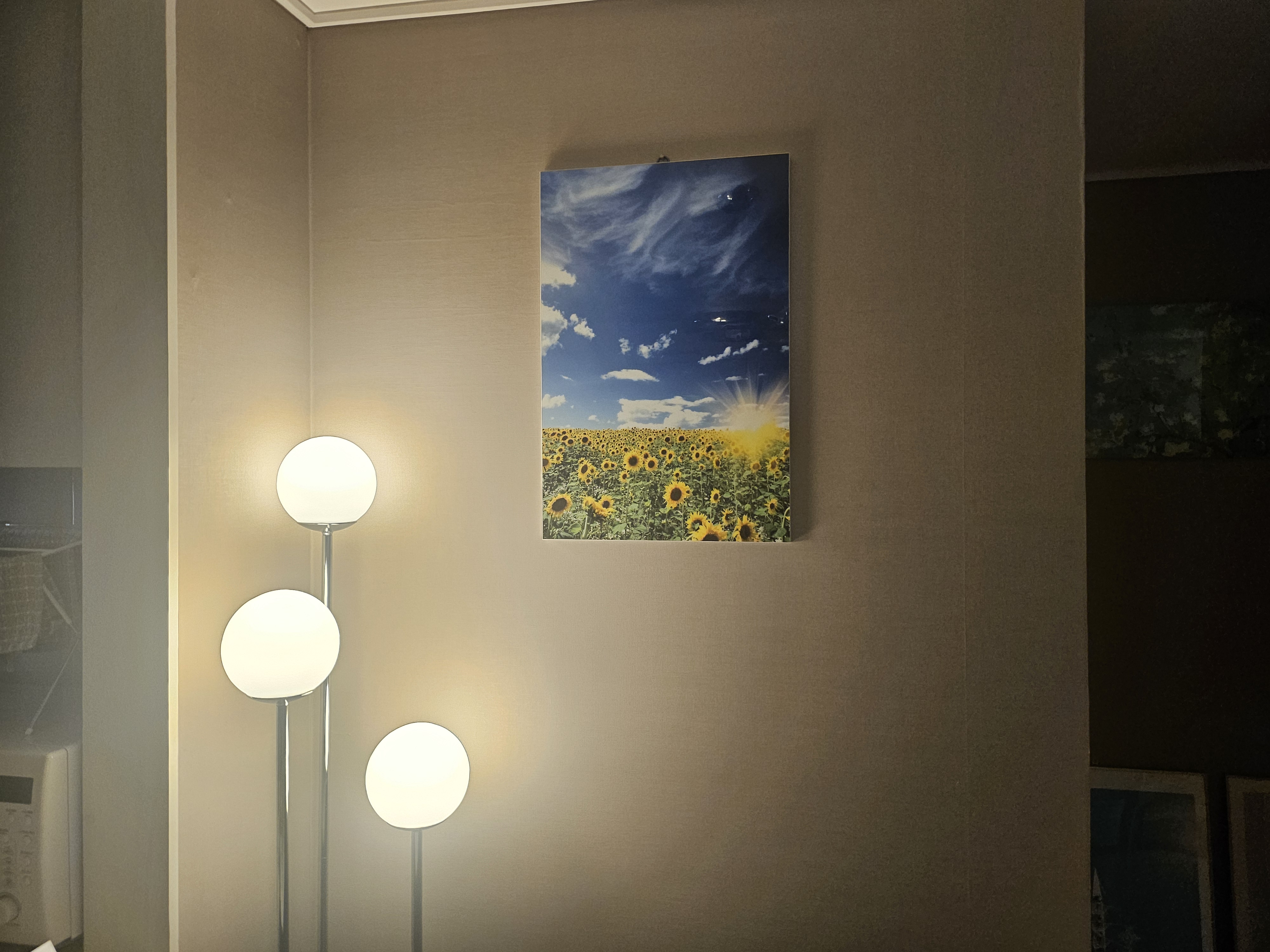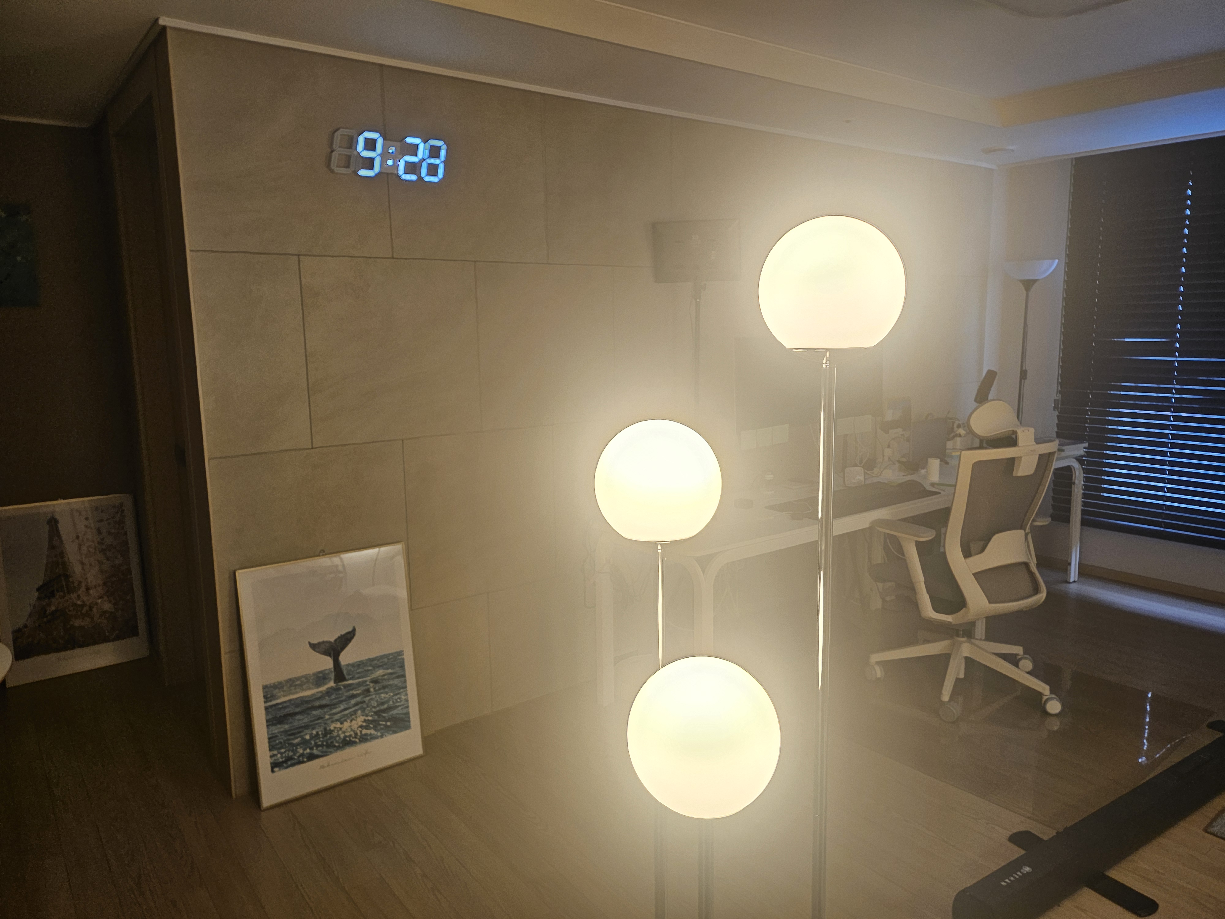 심리스함 스탠드 조명은 전구쪽은 진짜 예쁜데... 아래쪽에서부터 올라오는 구간이 조금 복잡해보이는 느낌?이 있어서 하단 부분을 조금 가려주는 인테리어를 하면 좋은 것 같아요. 그러면 윗부분만 보이면서 디자인이 확~ 살아납니다 ㅋㅋ