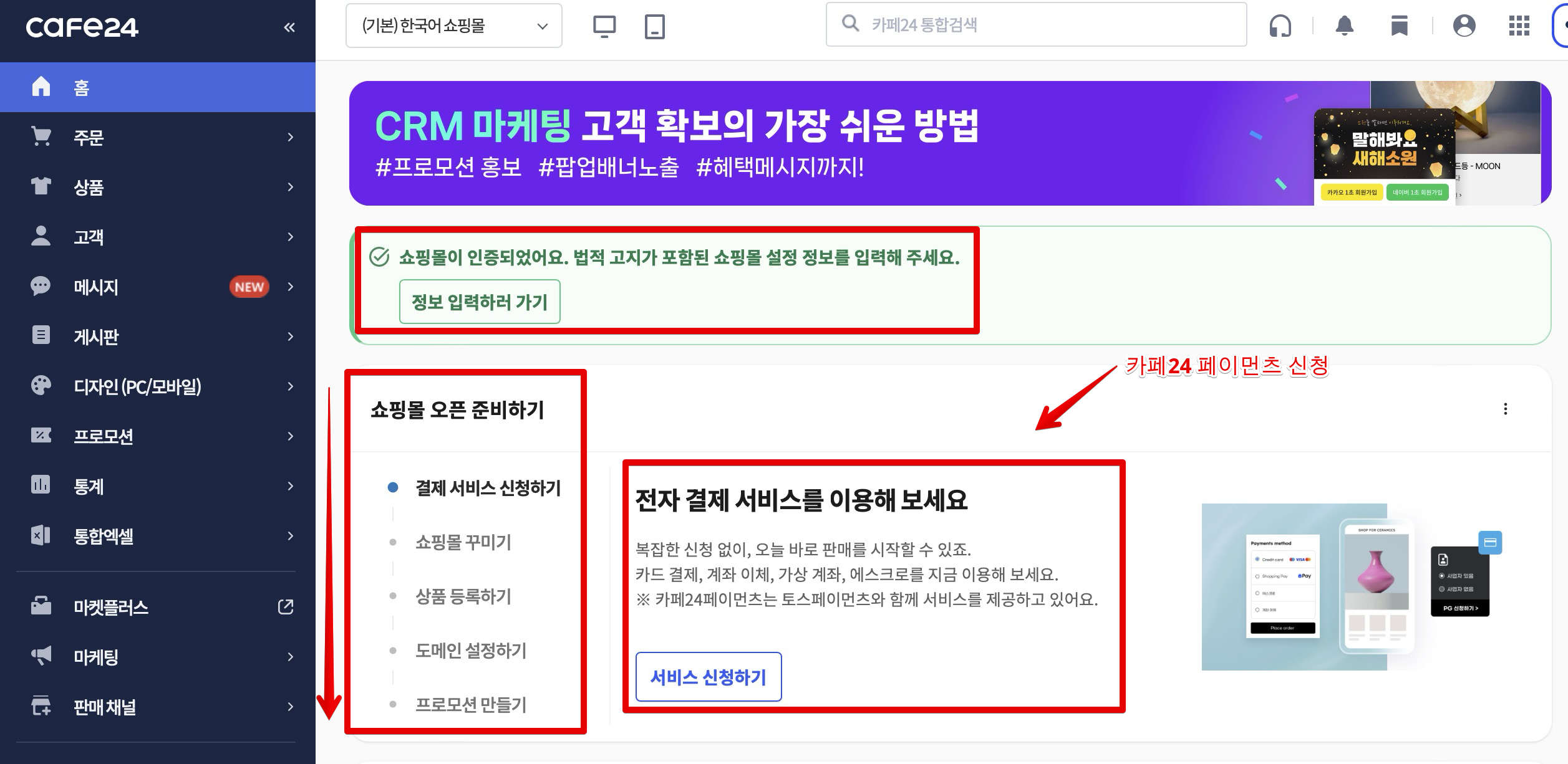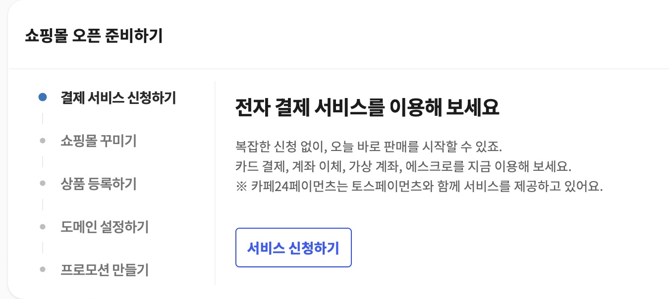 전자결제서비스(카페24 페이먼츠 서비스 신청하기)