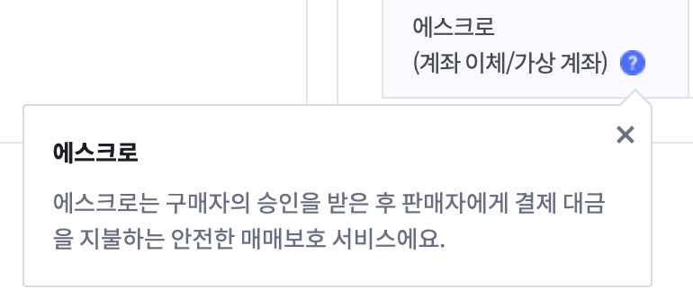 에스크로는 구매자의 승인을 받은 후 판매자에게 결제 대금이 지불하는 안전한 매매보호 서비스입니다.(소비자의 구매확정 등)