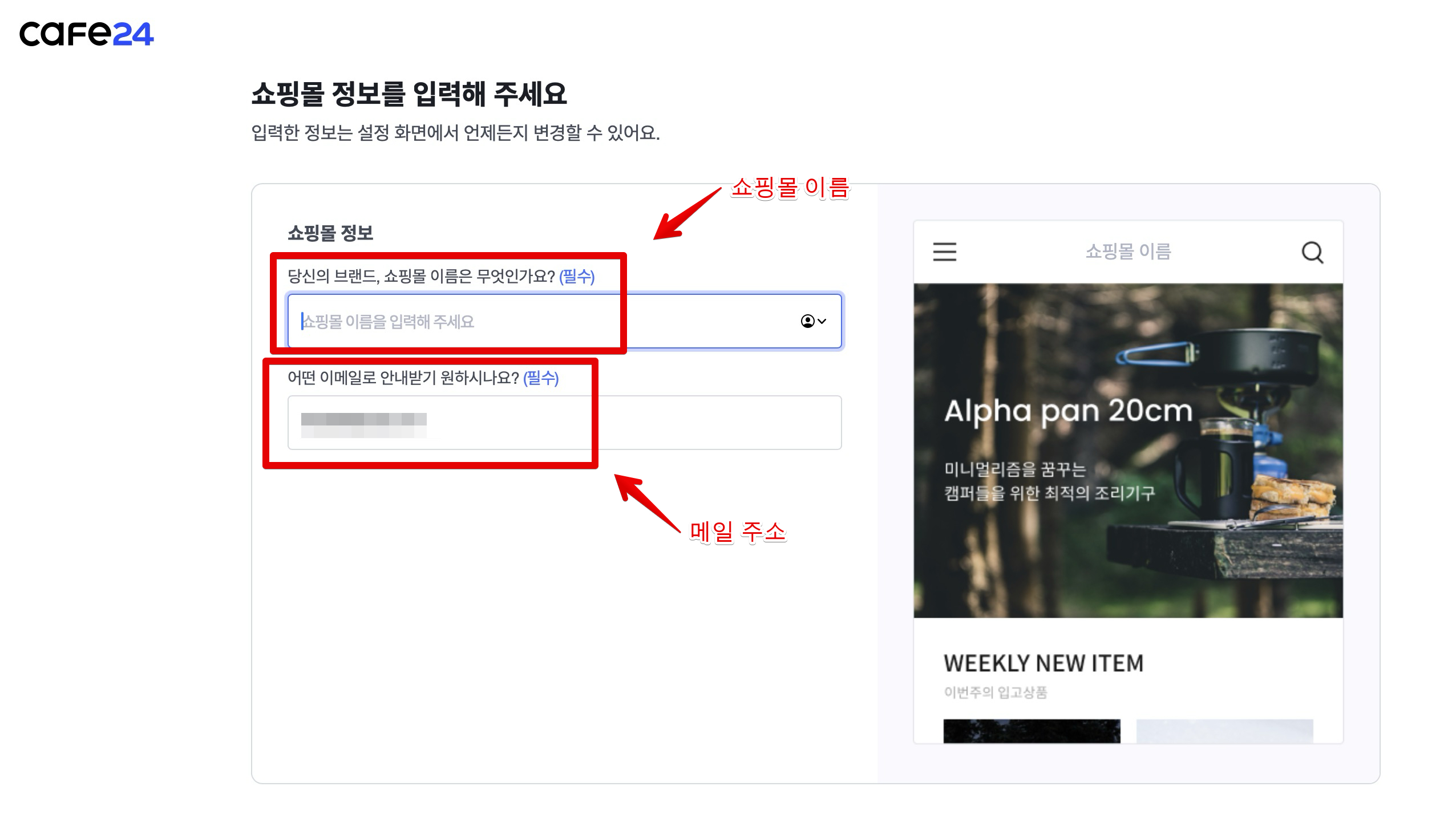 카페24 쇼핑몰 생성 하기