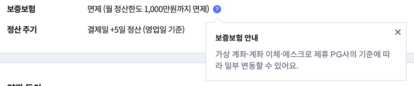 카페24페이먼츠의 보증보험의 경우 월 정산한도가 1000만원이 넘지 않으면 제한이 없어서 면제입니다. 이후 만약 월 정산한도가 1000만원이 넘게되면 월에 1000만원까지만 정산받을 수 있으며 초과하는 금액은 보증보험에 가입해야만 정산이 가능합니다.