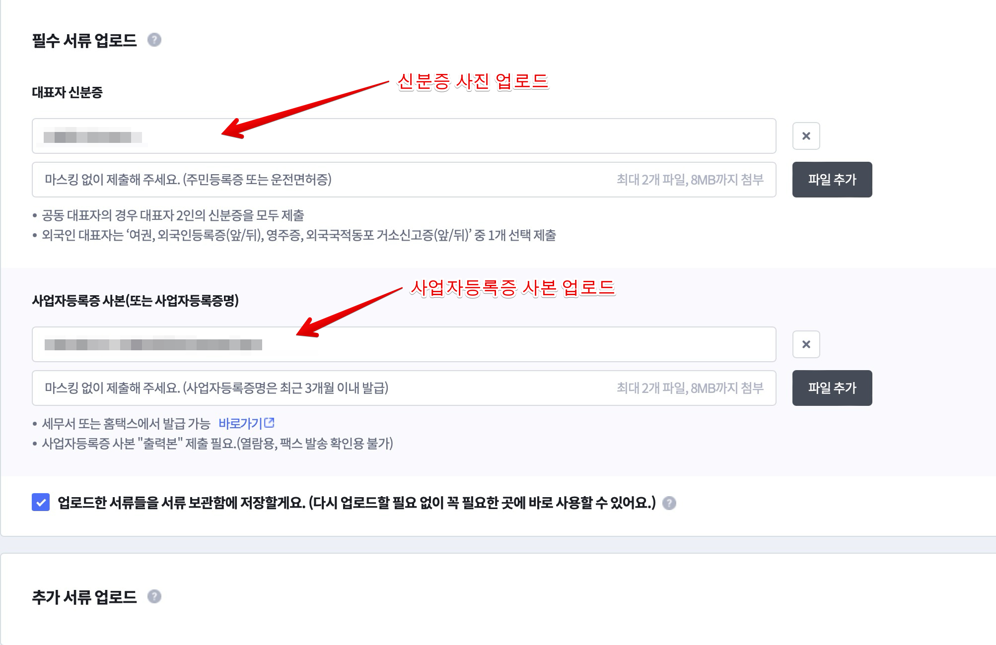 끝으로 신분증 사본과 사업자등록증 사본을 업로드해줍니다.