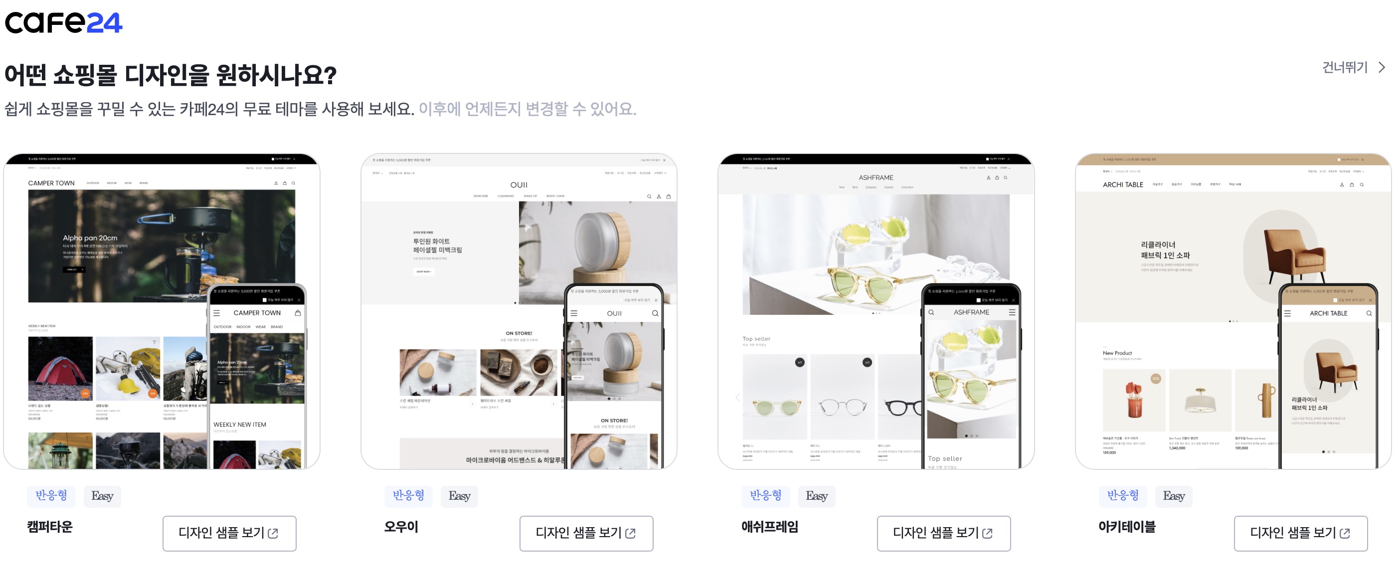 - 쇼핑몰 디자인 선택해야함