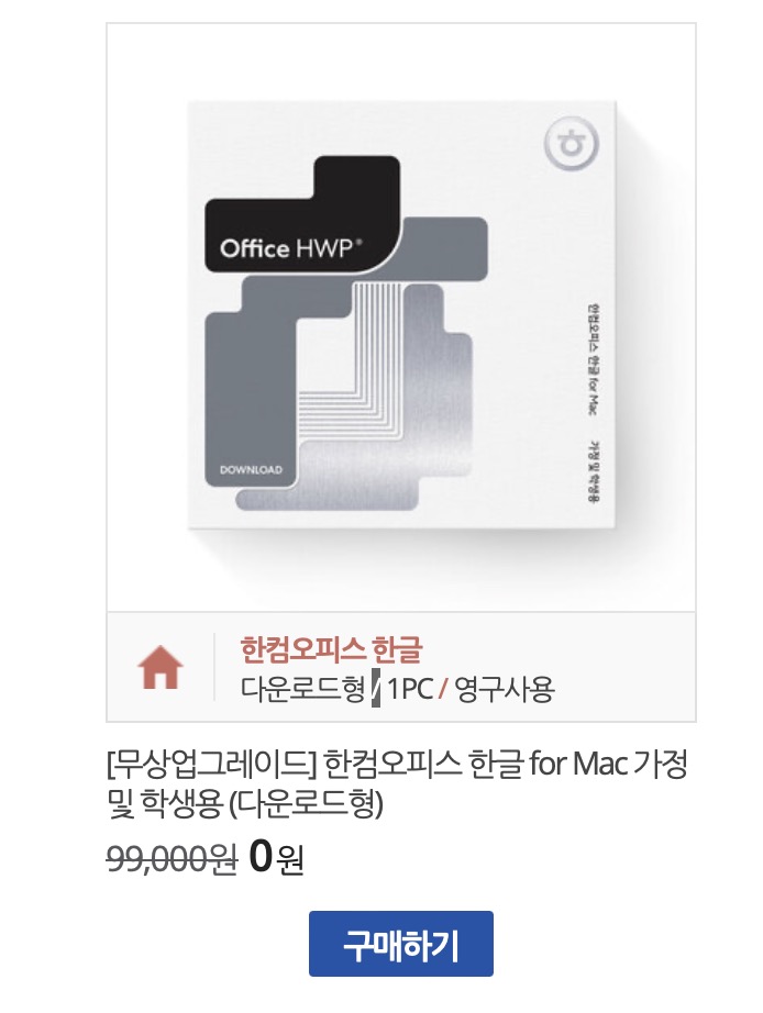 이번 이번에 알게된 사실은 한컴오피스 한글 for Mac 가정용 및 학생용의 제품 가격이 99,000원으로 책정된걸 알 수 있었습니다. 여기에서 50% 할인이 들어가게 되면, 제품 가격은 49,500원이 될 것입니다.