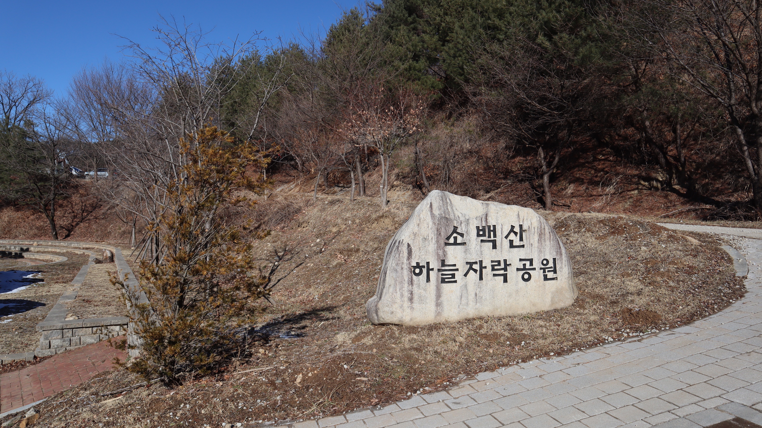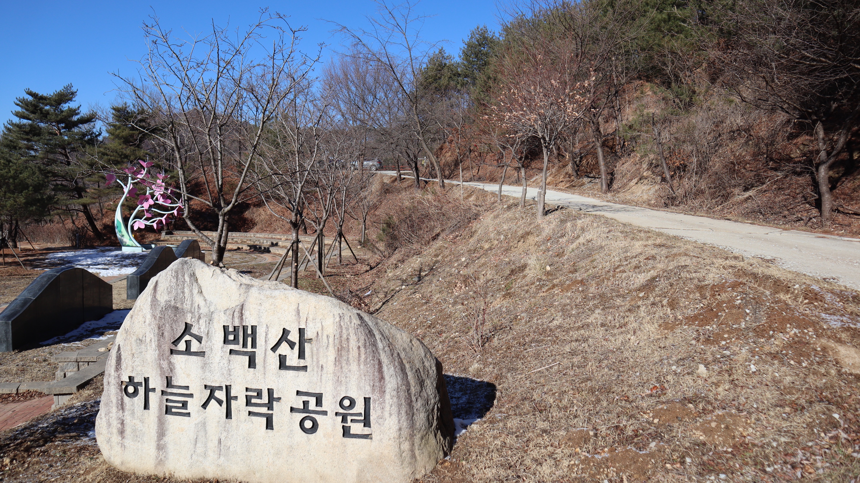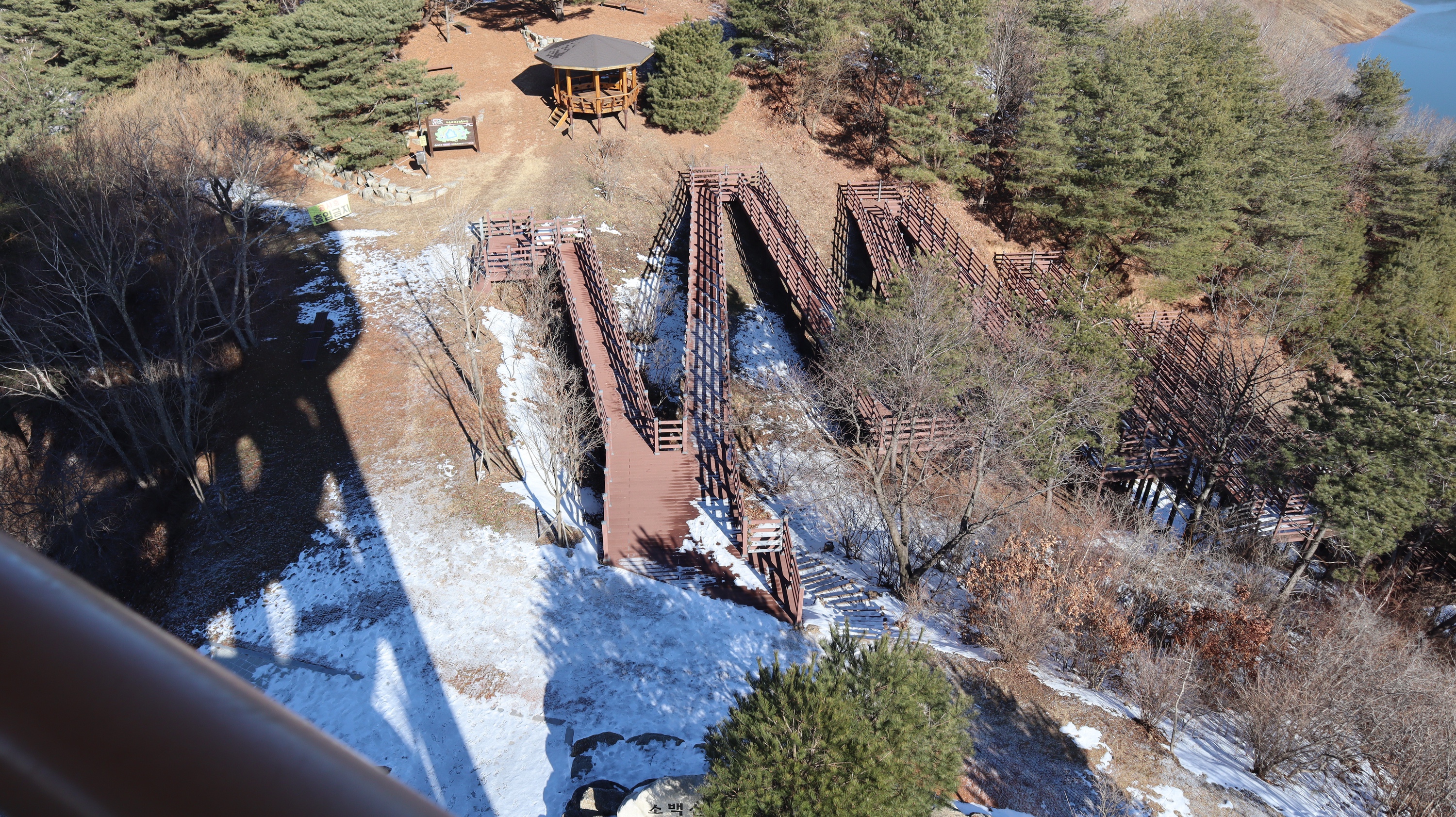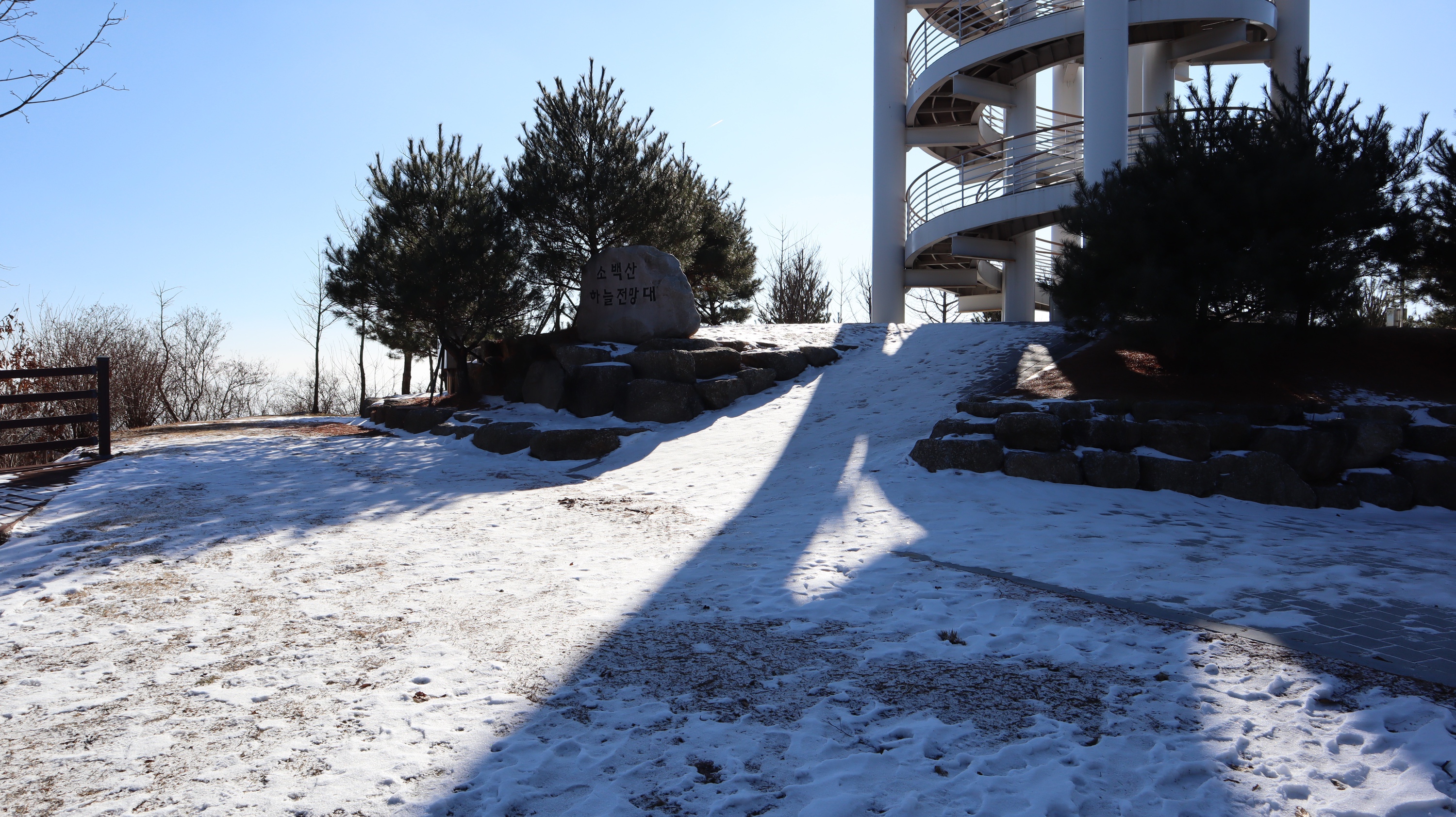 제가 방문했던 전날에 눈이 조금 내렸었는데 예천 시내쪽은 눈이 아예 없었는데요. 소백산하늘자락공원 쪽은 지대가 높은 곳이고 산 속이라서 그런지 눈이 내린 모습을 그대로 만나볼 수 있었습니다. 혹시라도 미끄러워서 넘어질까봐 조심조심해서 올라갔었는데 크게 미끄럽지는 않았어요.