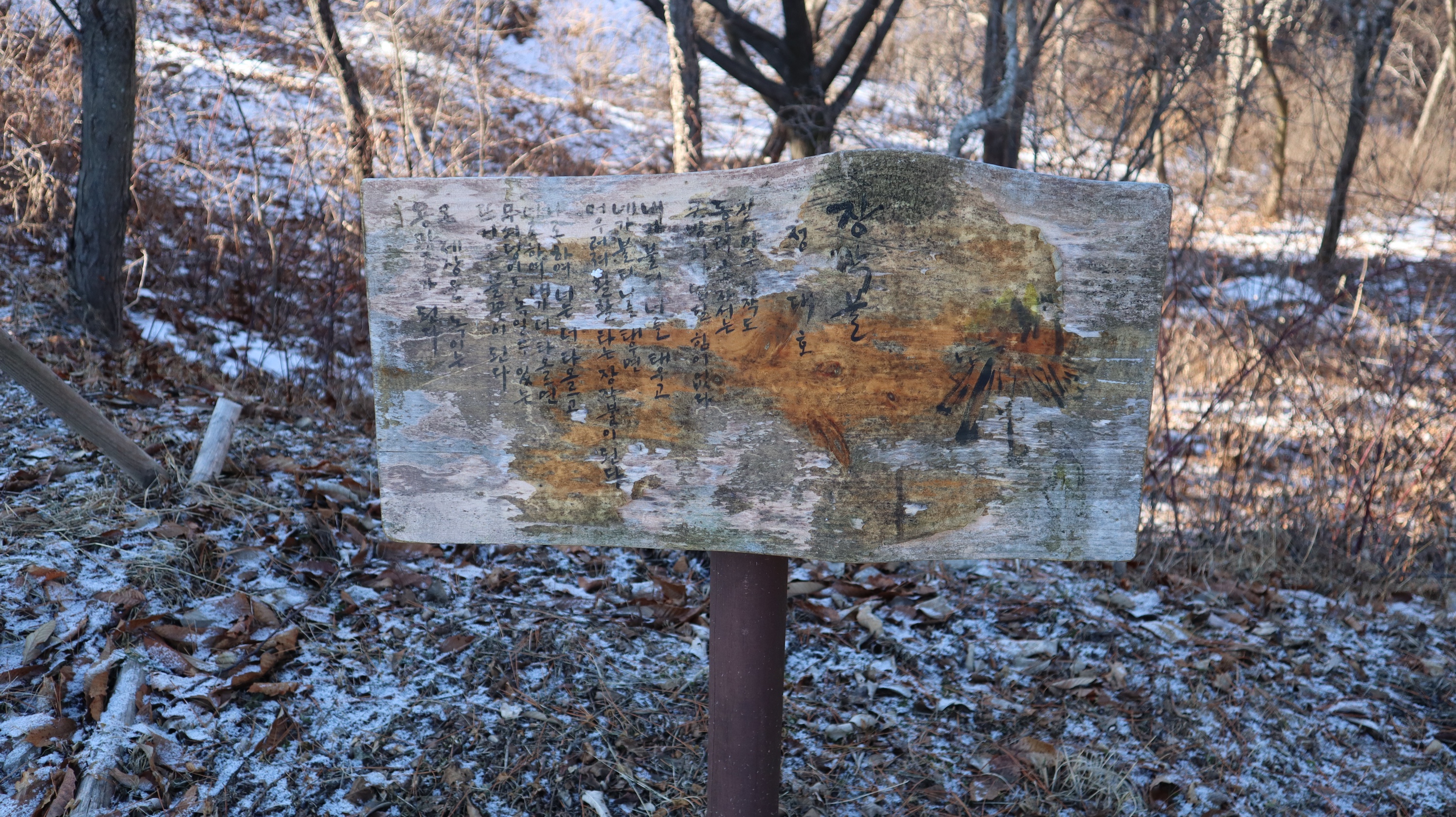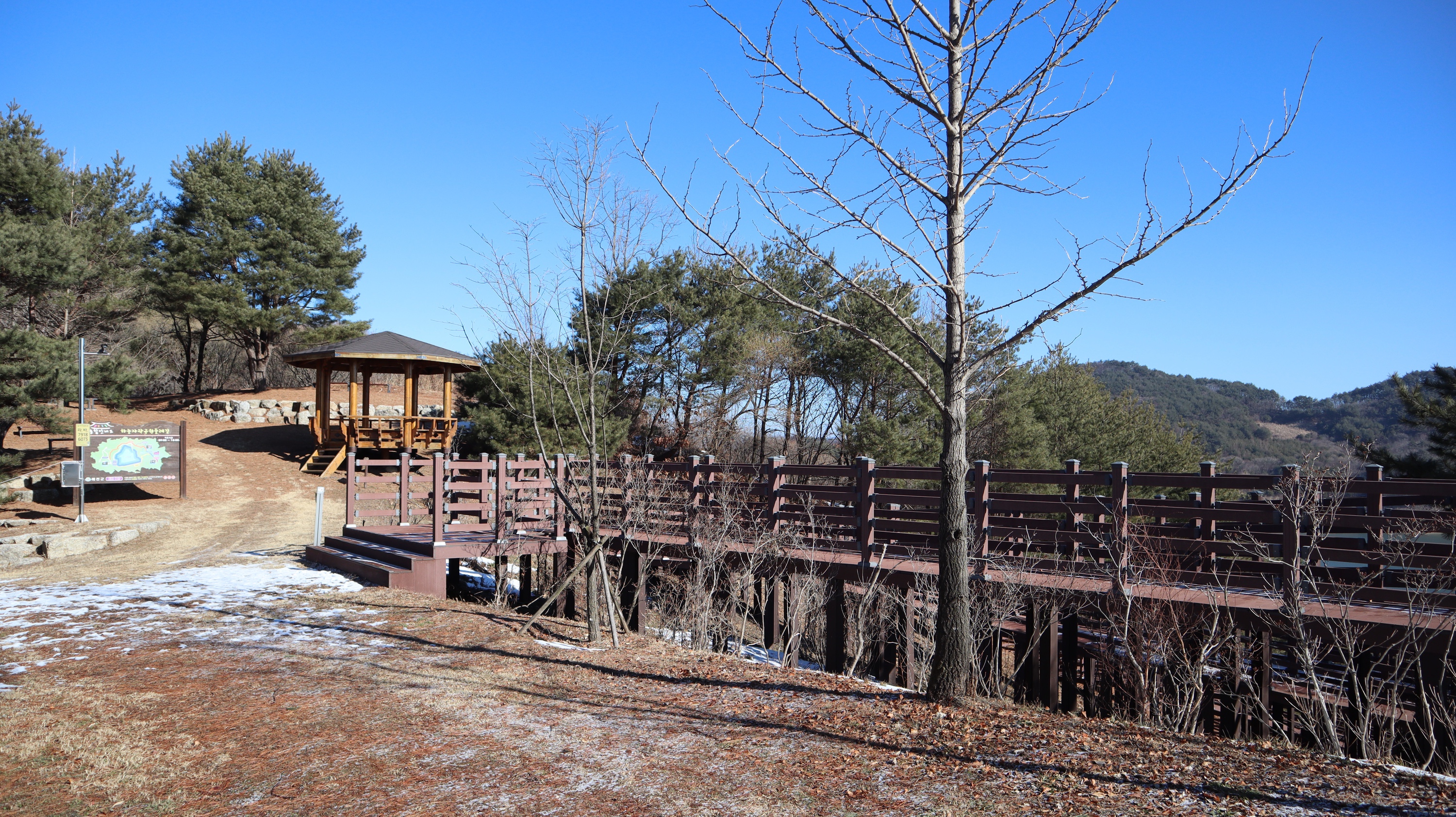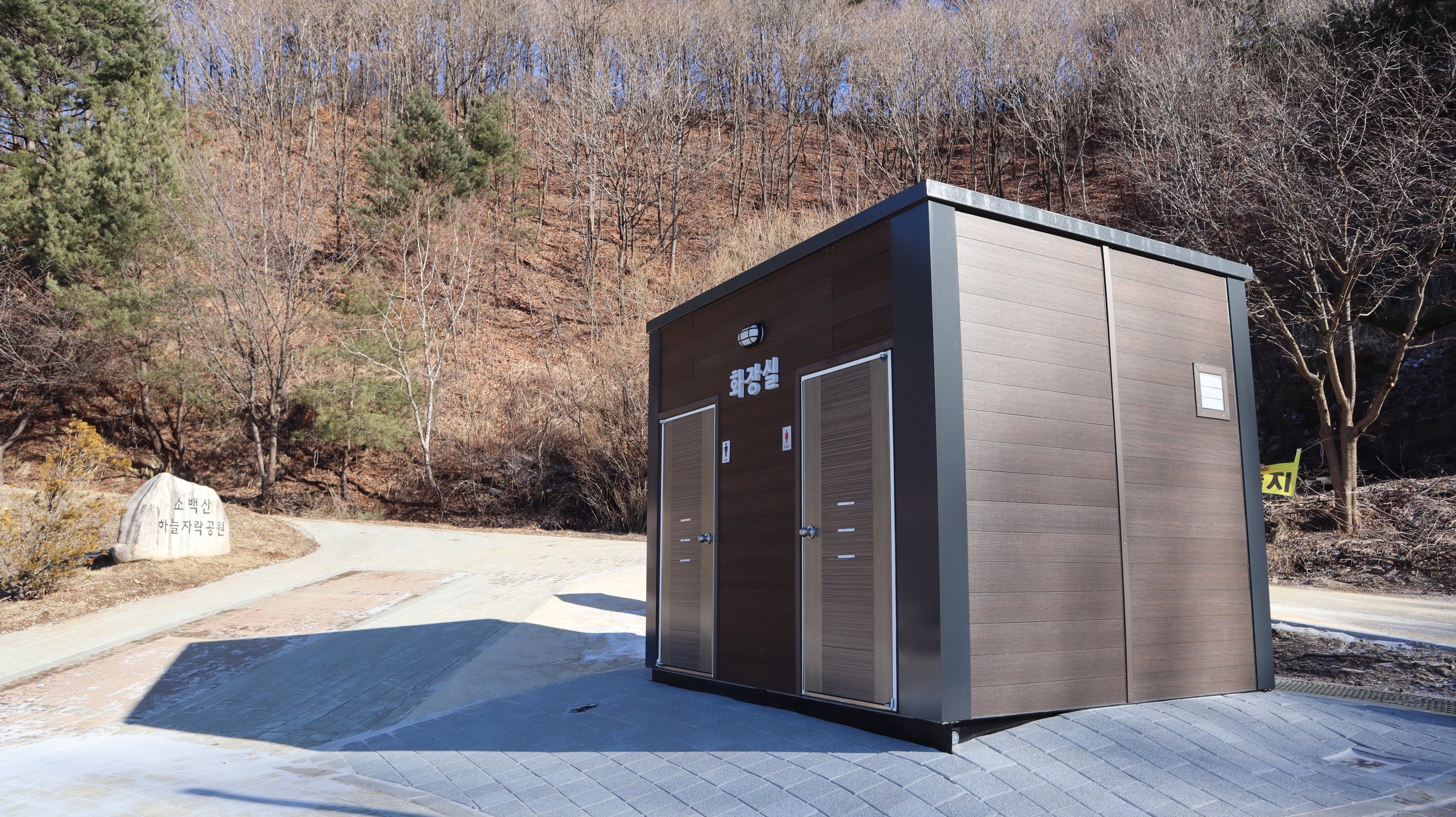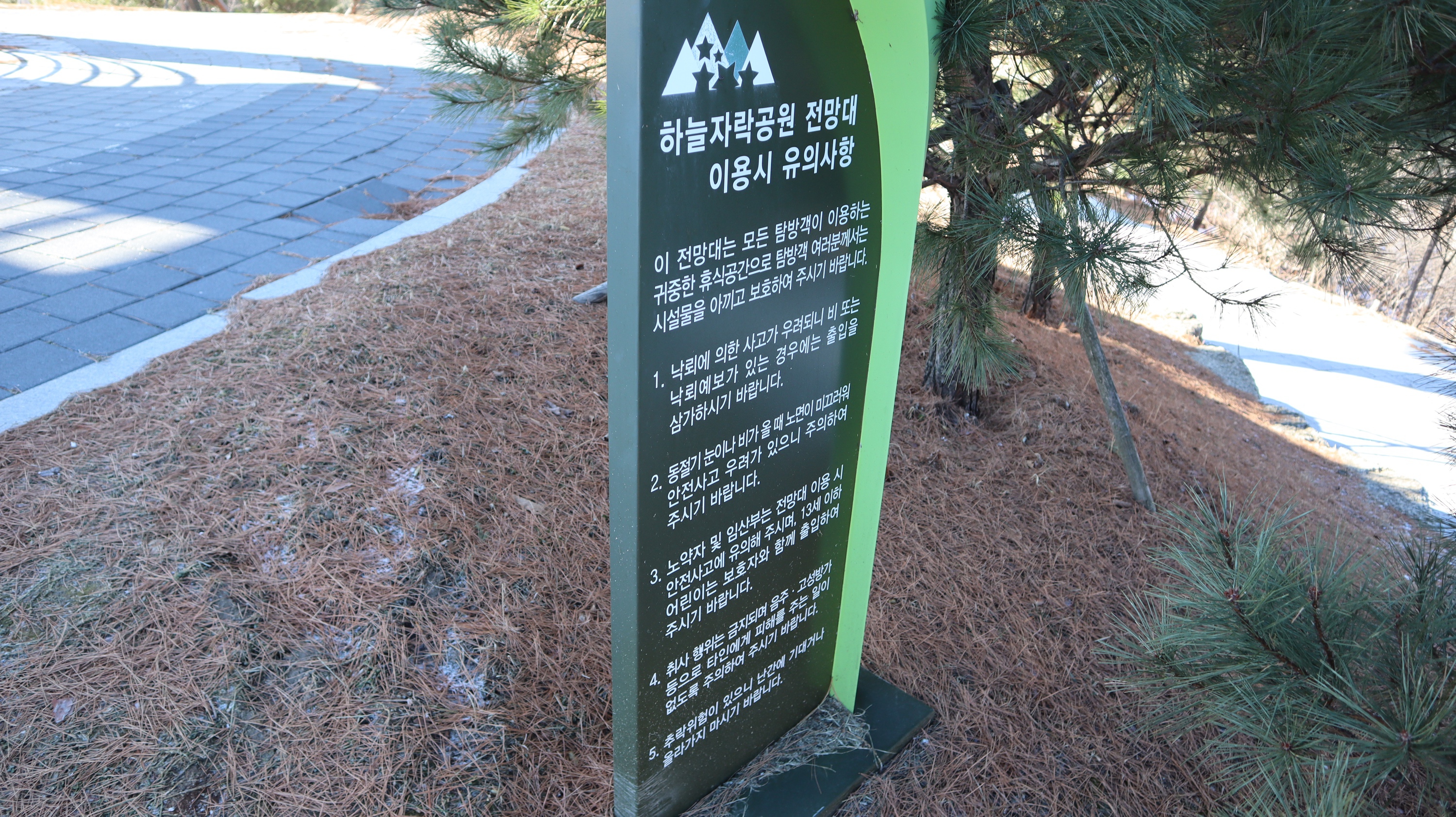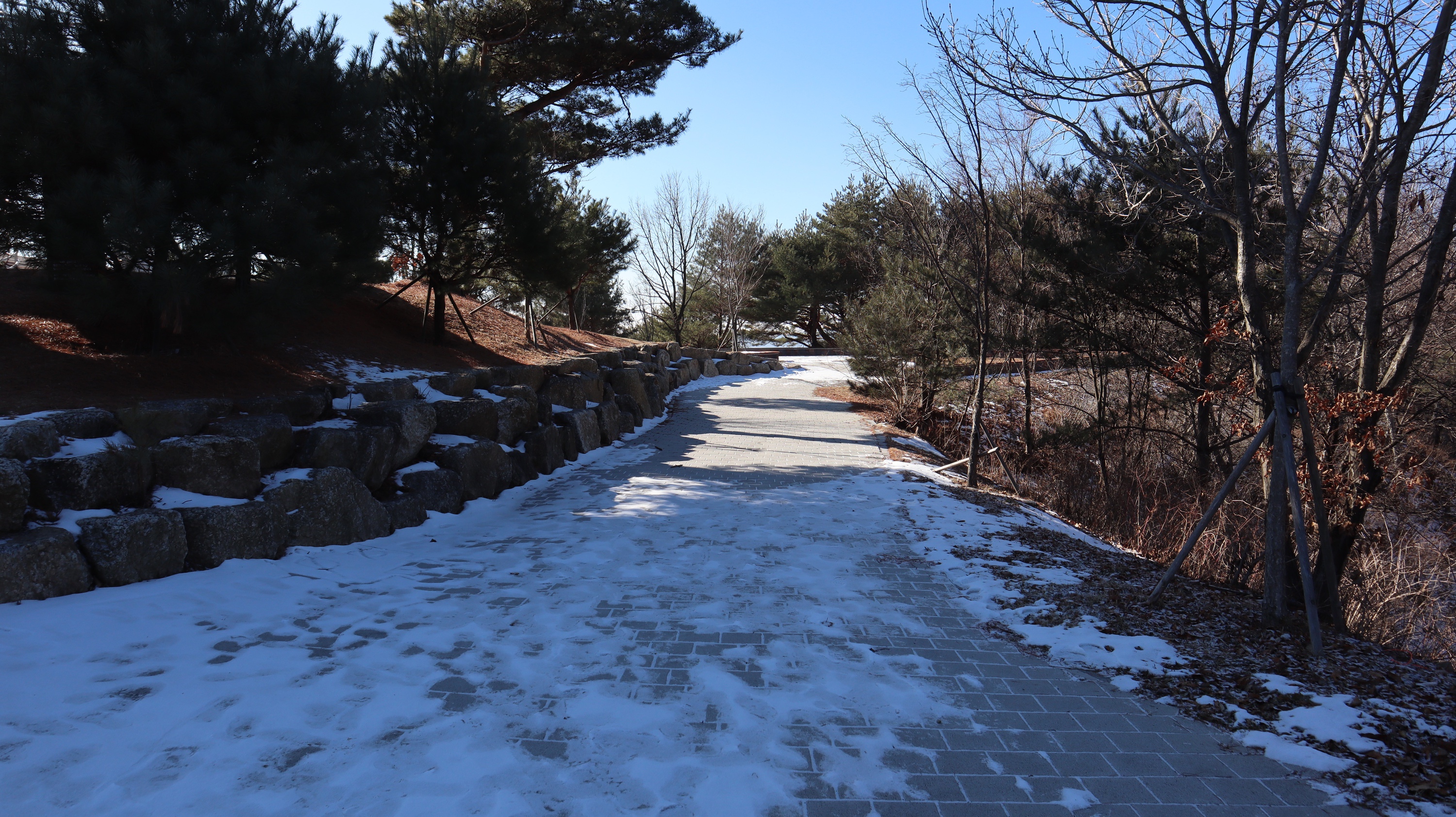 제가 방문했던 전날에 눈이 조금 내렸었는데 예천 시내쪽은 눈이 아예 없었는데요. 소백산하늘자락공원 쪽은 지대가 높은 곳이고 산 속이라서 그런지 눈이 내린 모습을 그대로 만나볼 수 있었습니다. 혹시라도 미끄러워서 넘어질까봐 조심조심해서 올라갔었는데 크게 미끄럽지는 않았어요.