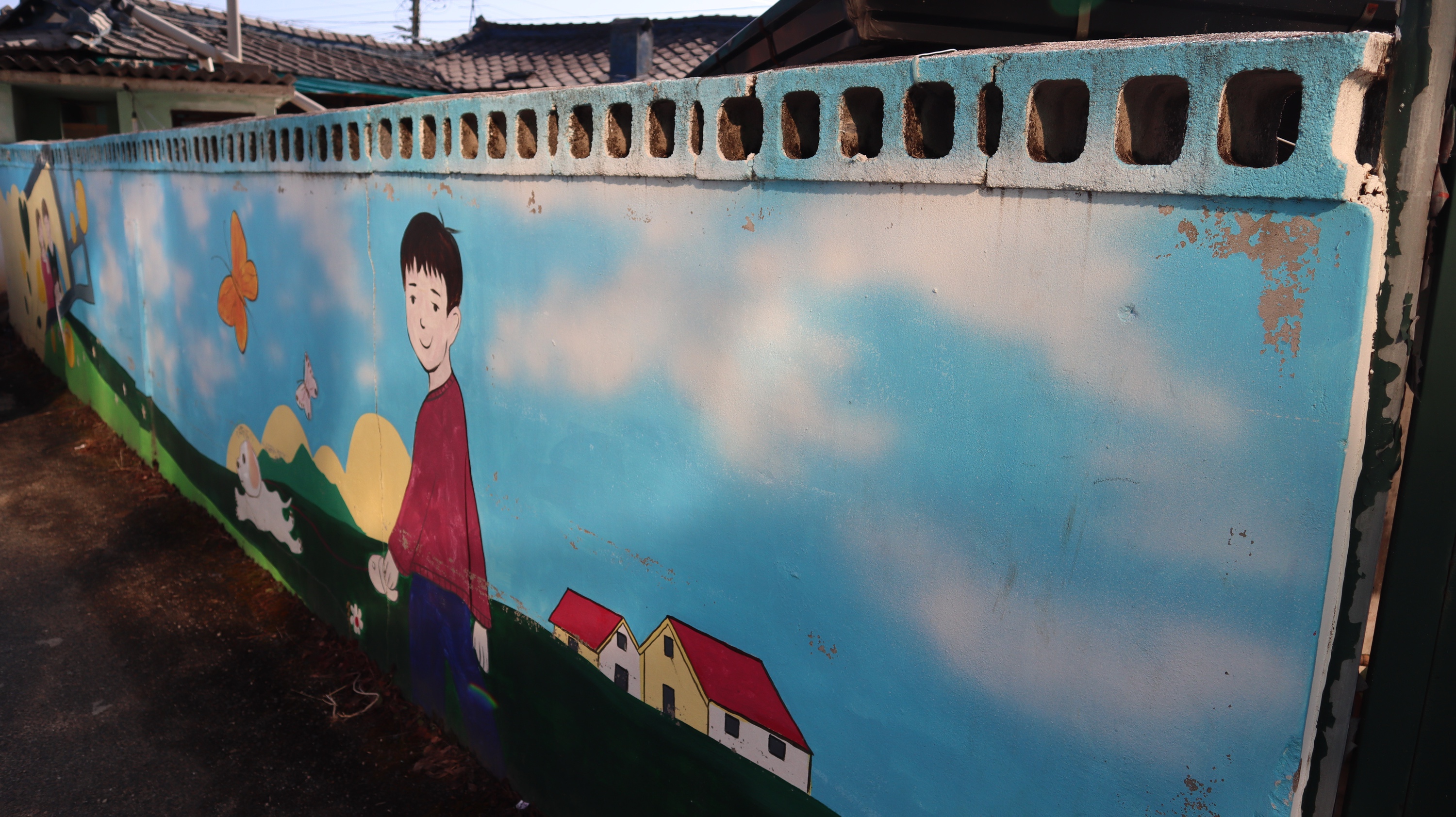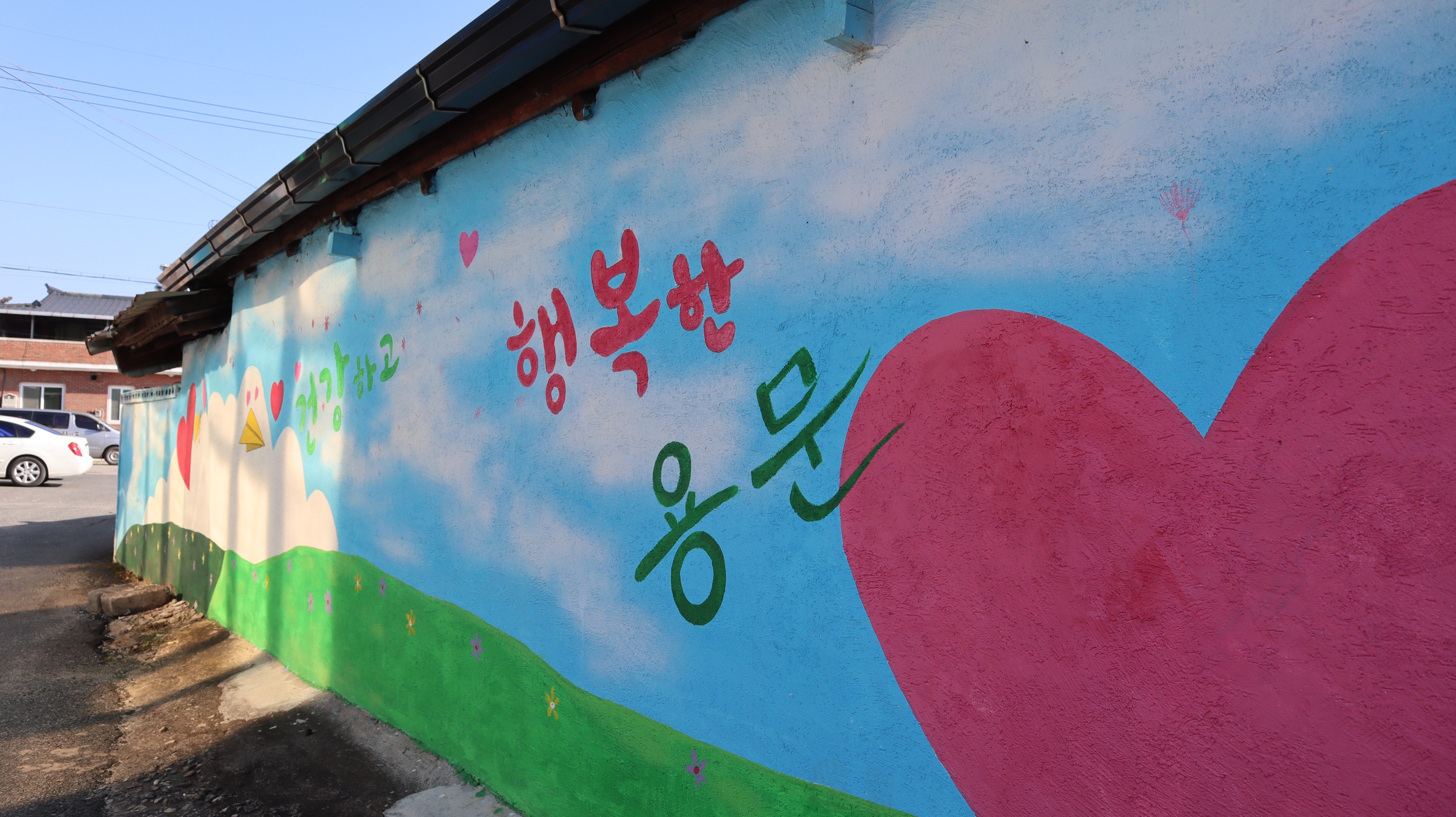김교문손짜장에서 조금만 걸어가면 예천농협이 나오는데요. 예천농협 근처에 벽화가 예쁘게 그려진것들이 있어서 볼거리를 제공해주고 있었어요. 행복한 용문이라는 글귀가 기억에 남네요.