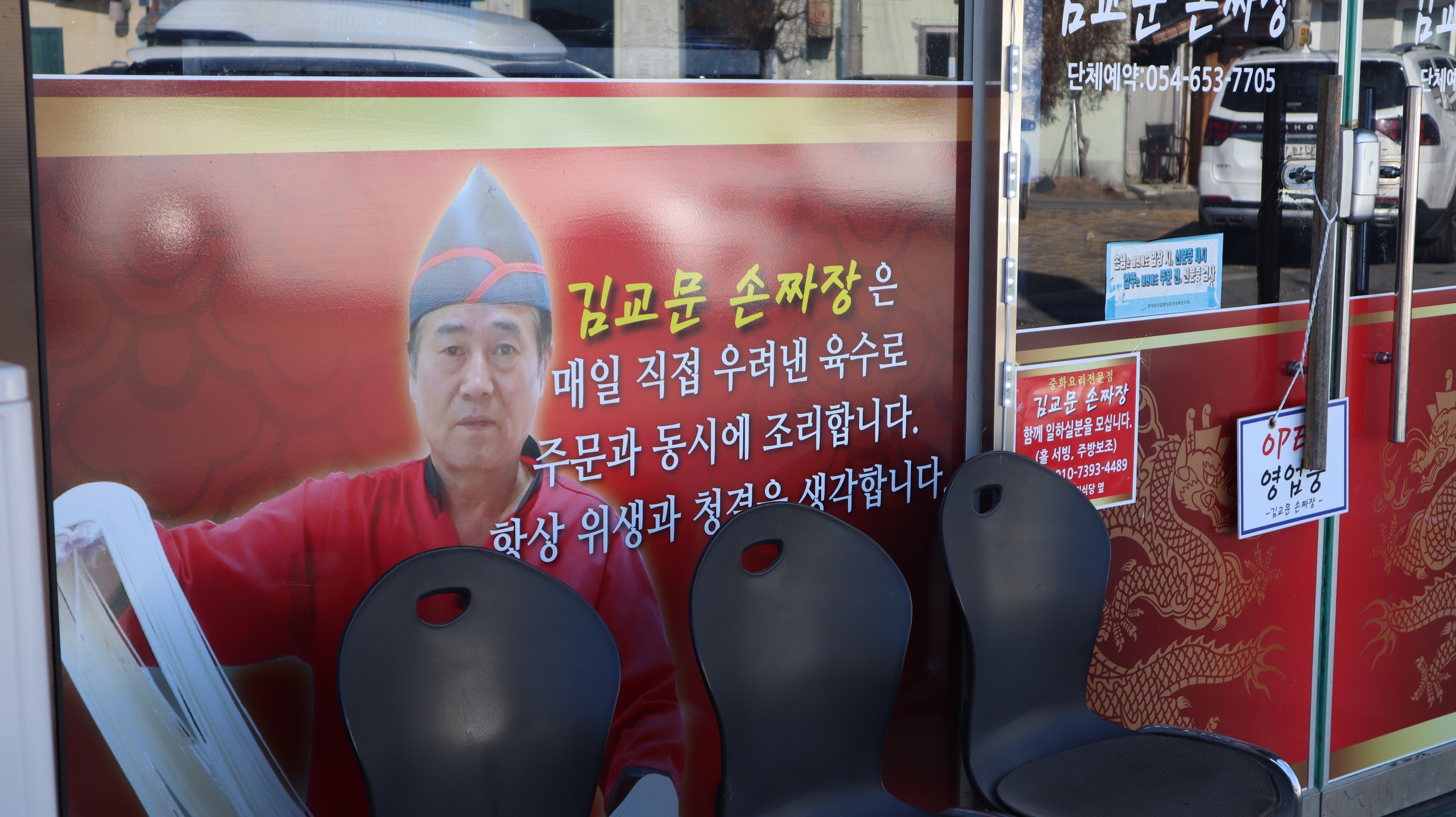 예천에서 성업 중인 김교문손짜장이라는 곳이에요. 접근성이 좋은 곳에 자리잡고 있는데 저는 1인으로 혼밥하러 갔었는데도 친절하게 안내해주시고 맛있는 식사도 서비스해주셨던 가게입니다. 가게의 정확한 이름은 김교문손짜장인데 입간판에는 김교문맛짬뽕이라고 돼 있는데, 아마 예전 이름이 아니겠나... 생각이 듭니다.