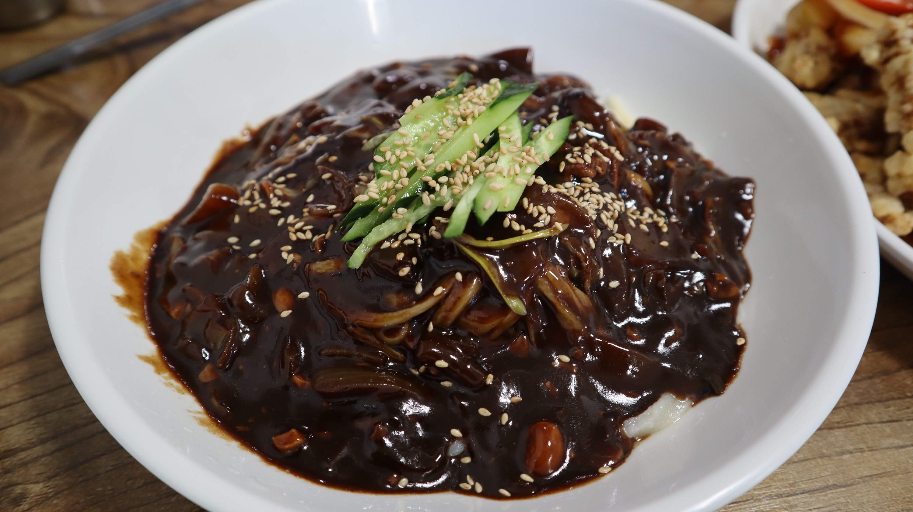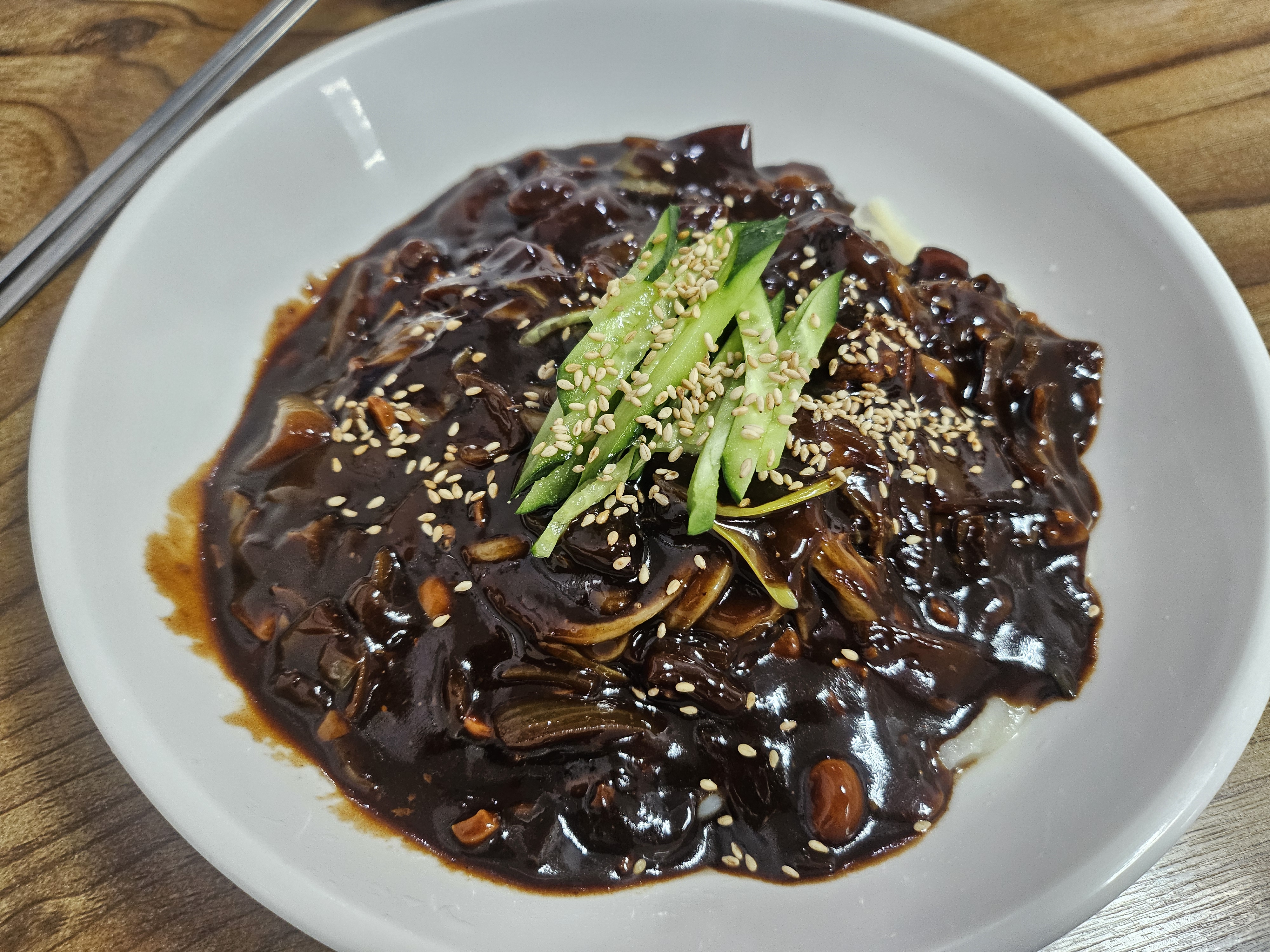 주문 후 조금 기다리니까 짜장면이 나왔습니다. 오이가 조금 올라간 약간 옛날식 짜장면 스타일인데 제가 원래 짜장면을 좋아하는 편이라서 정말 맛있게 잘 먹었습니다. 특별히 자극적이지 않으면서도 적당하게 고소한 맛이 나는 짜장면 스타일입니다. 특출나다고 하기보다는 무난한 스타일에 가까운 느낌입니다.