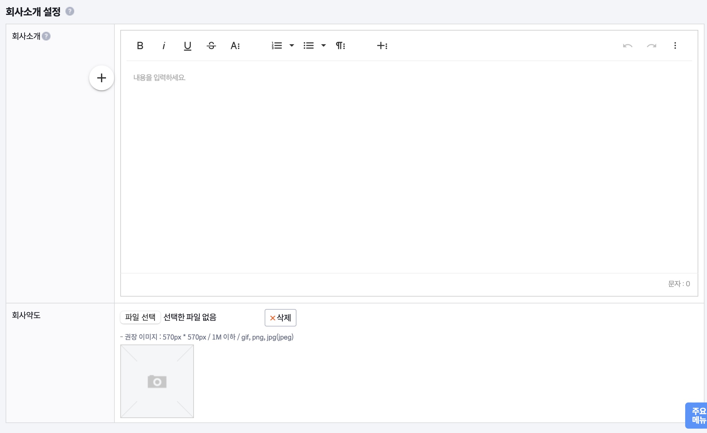 아래쪽에 회사소개 설정이 있는데 이 부분은 넘어가도 됩니다.