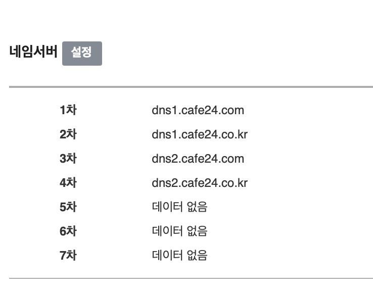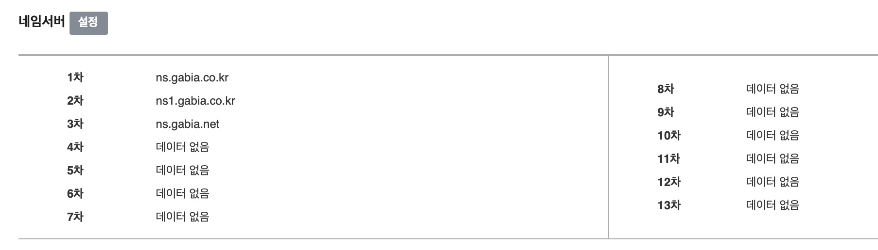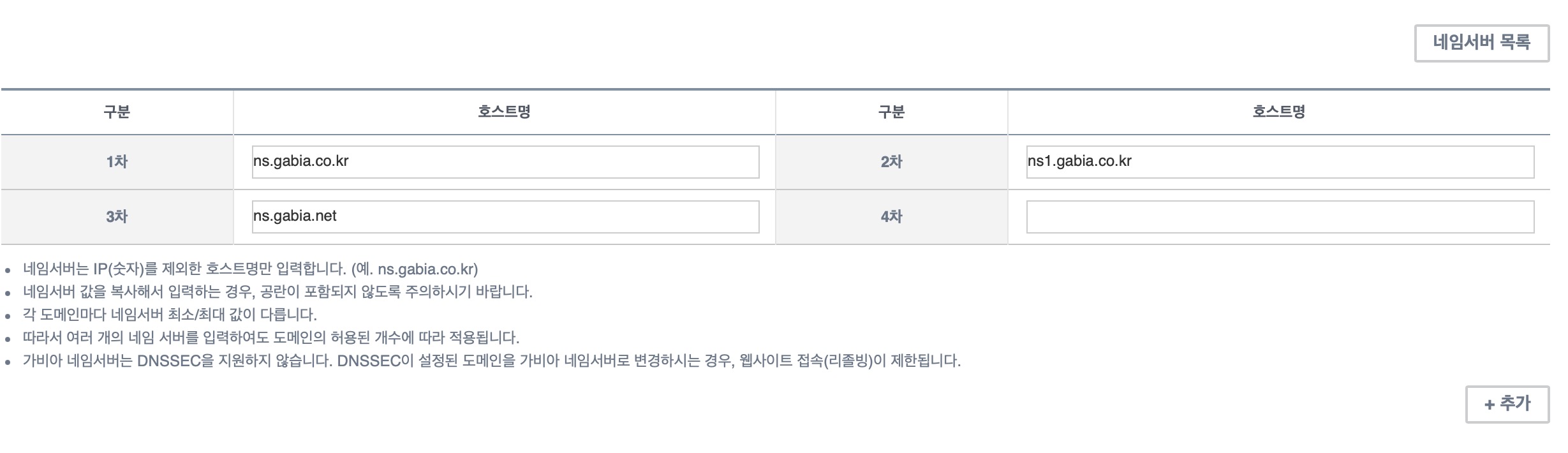 가비아의 경우 기본적으로 이렇게 네임서버가 잡혀있는데 이걸 수정해줍니다.