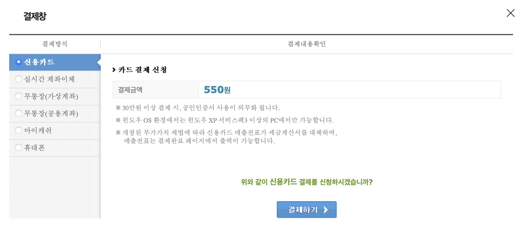 끝으로 550원을 결제한 후 도메인 구매를 완료합니다.