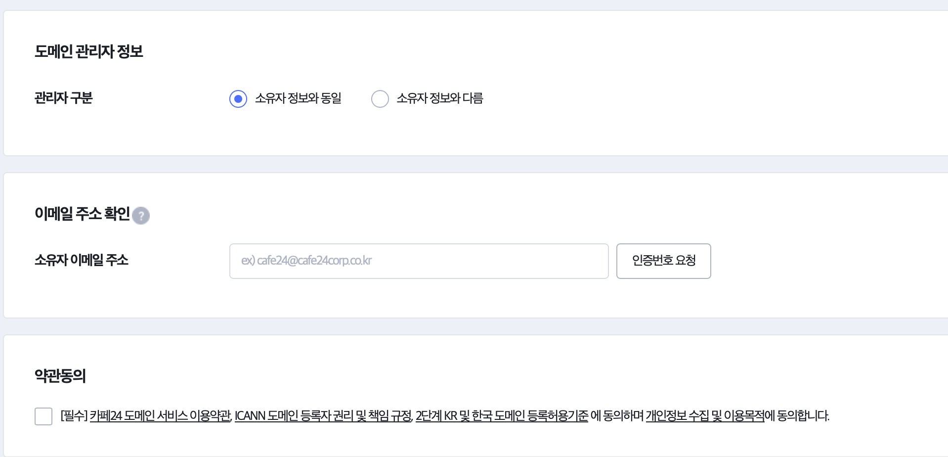 다음으로 도메인 관리자 정보에서 관리자 구분을 선택하고 이메일 주소 등록해서 인증을 받으세요.