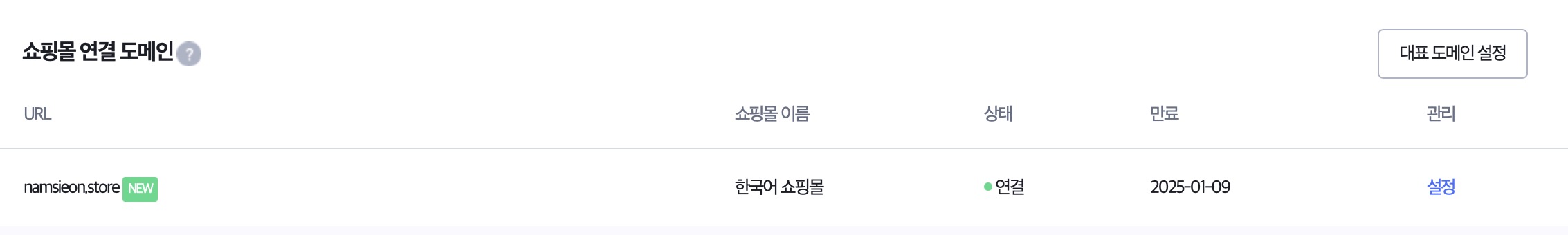 이제 해당 도메인으로 접속해보면 내가 만들고 있는 쇼핑몰로 접속되는 모습을 볼 수 있습니다. 도메인 연결이 끝났습니다. 이렇게 연결된 도메인은 추후 명함이나 SNS, 유튜브 쇼핑 등에 연결해서 쓸 것입니다.