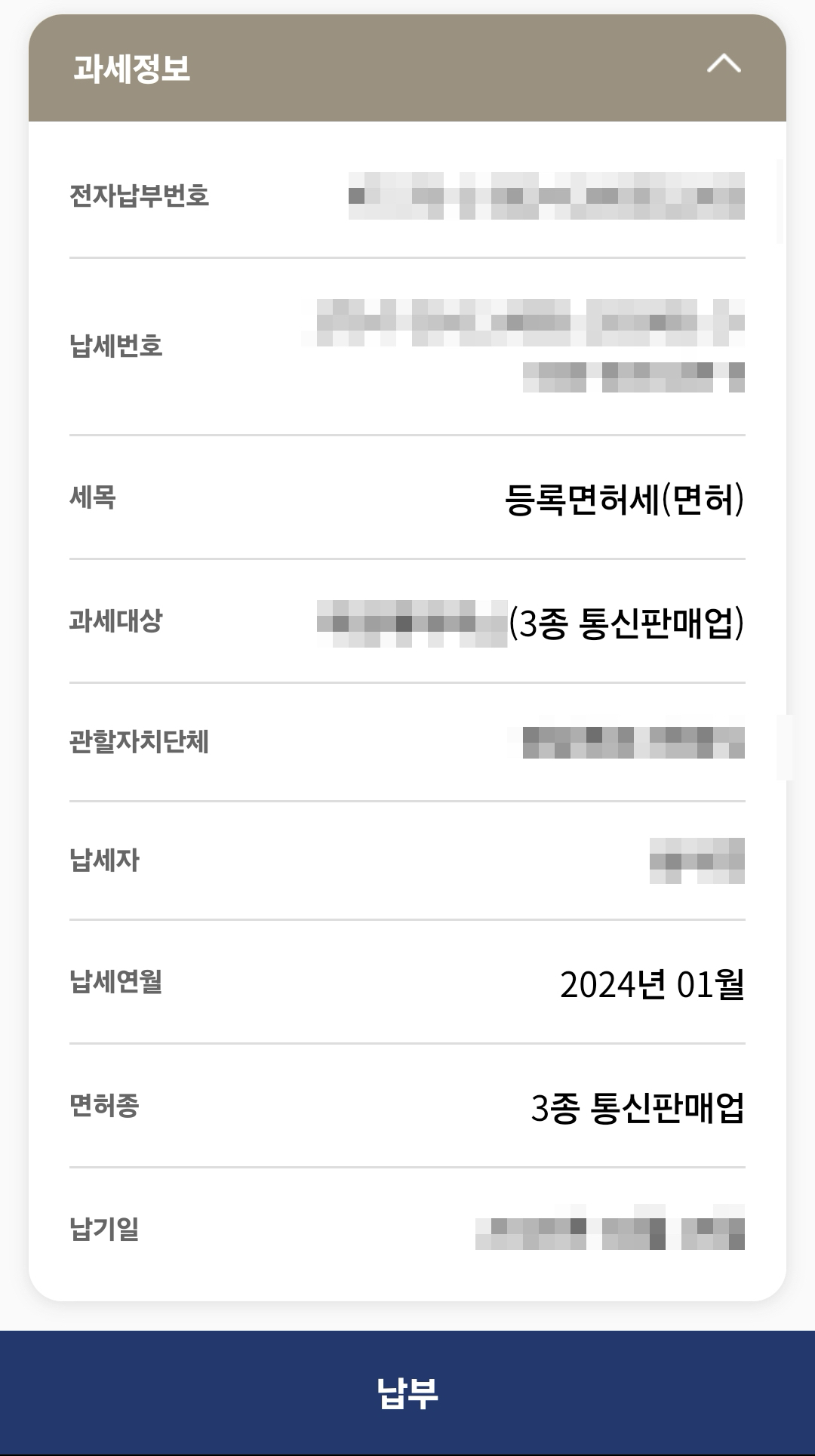 금액 맞는지 확인하고 납부 진행해줍니다.