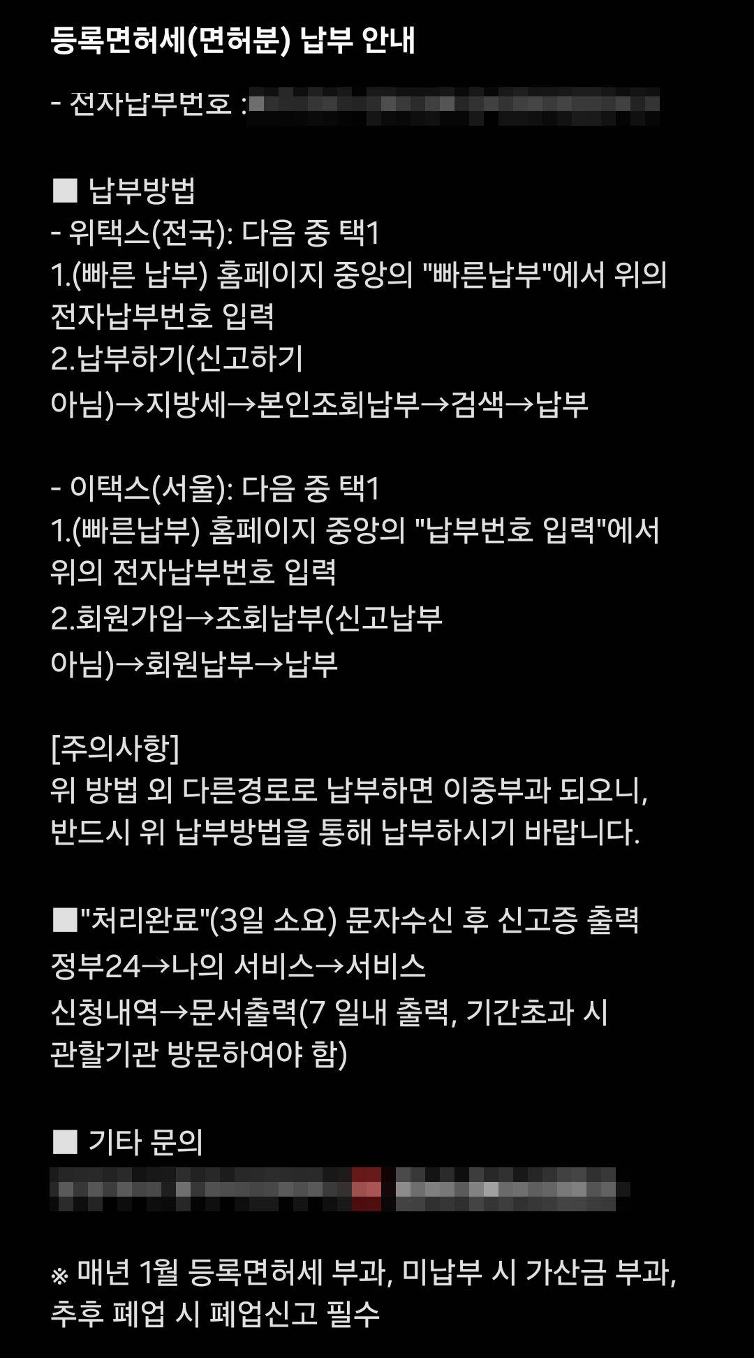 또한, 통신판매업 등록면허세의 경우 매년 1월 1일에 부과되며 미납부시 가산금이 부과되며 나중에 폐업할 경우 폐업신고를 통해서 등록면허를 해지해주어야 합니다.