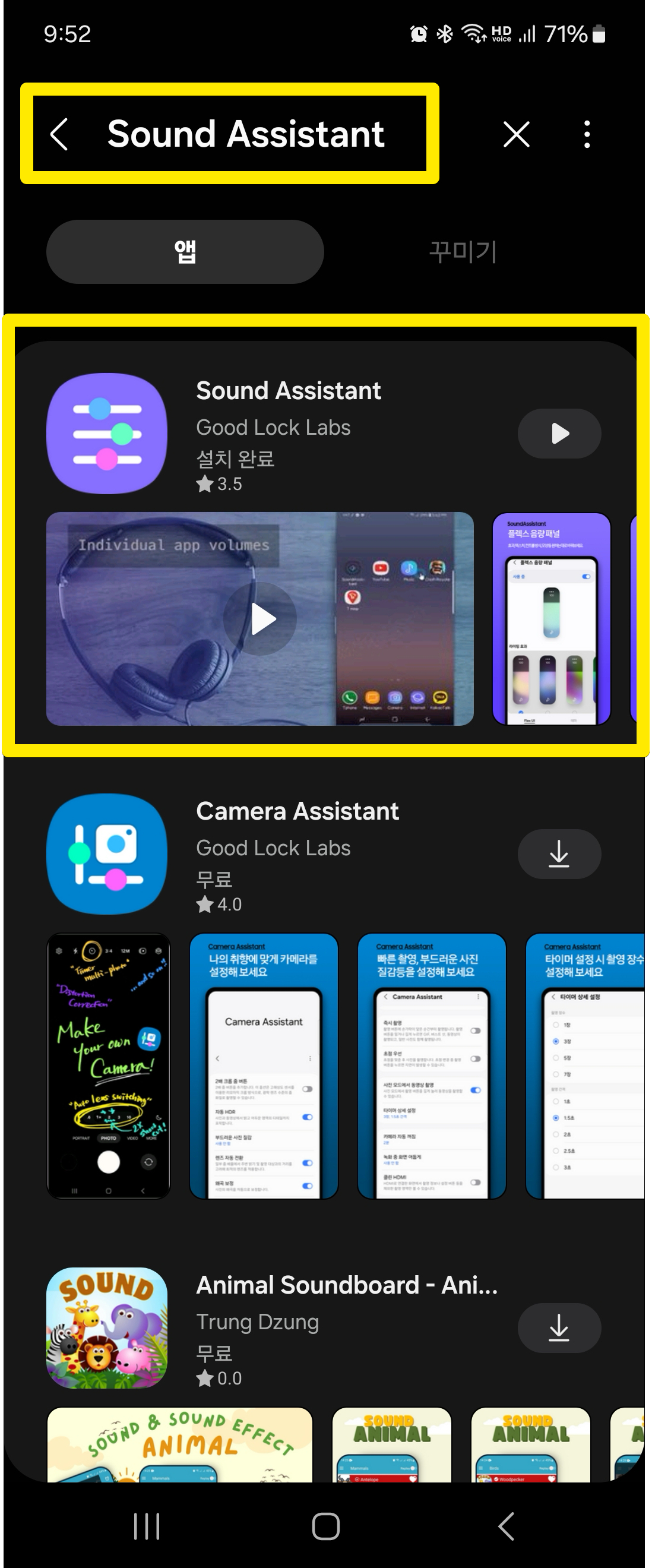 일단 갤럭시 스토어로 들어간 다음 Sound Assistant 앱을 설치해주세요.
