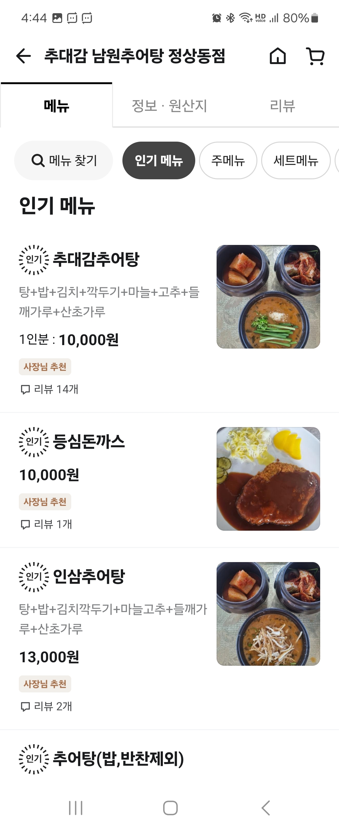 배달의민족에서 추대감 남원추어탕 정상동점 찾으면, 배달의민족 배달도 가능하니 참고해주세요! 리뷰 이벤트도 진행 중이에요.