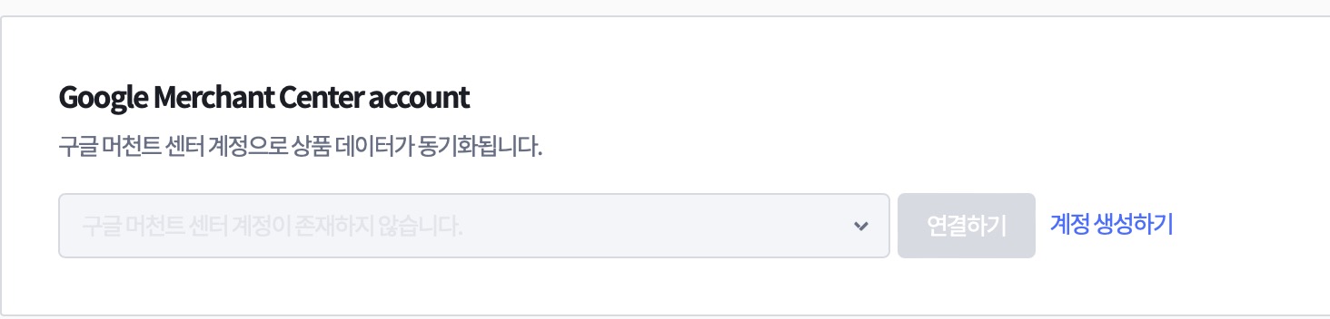 다음으로 구글 머천트센터의 계정을 넣어야하는데요. 여기 계정을 넣게 되면 구글 머천트 센터 계정으로 상품 데이터가 동기화가 되는 방식입니다.