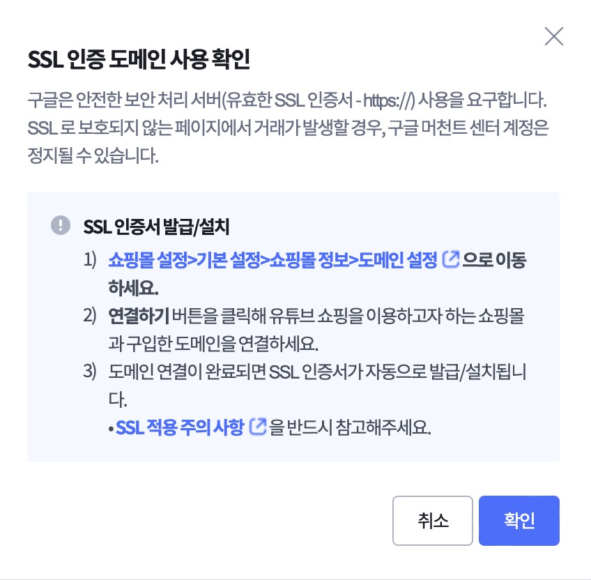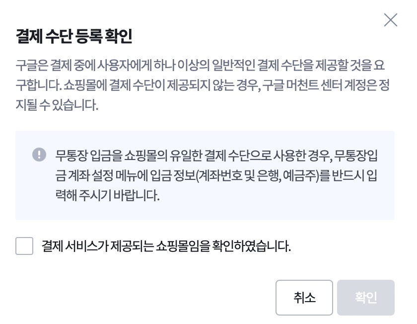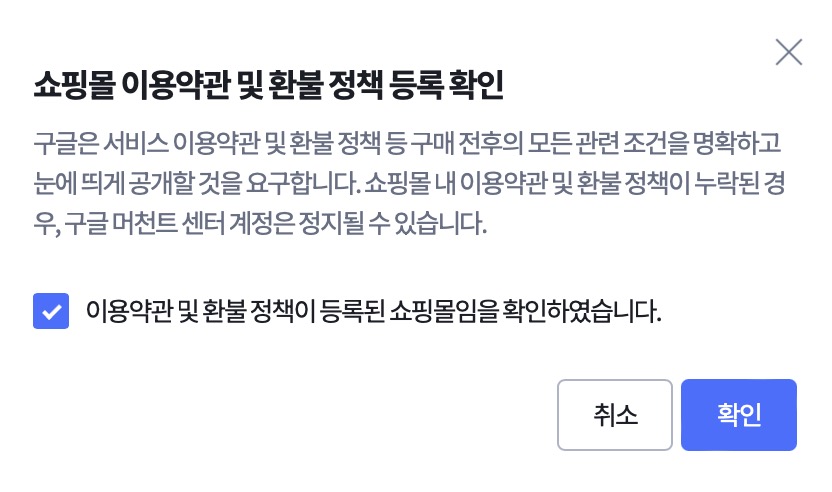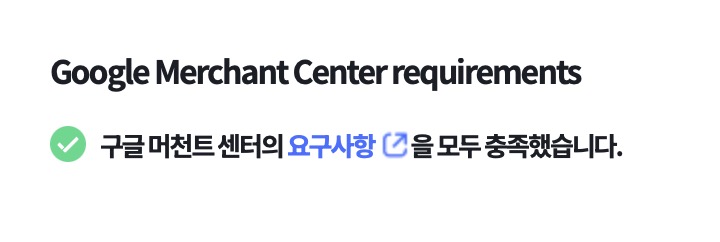 구글 머천트 센터의 요구사항을 모두 충족했습니다.