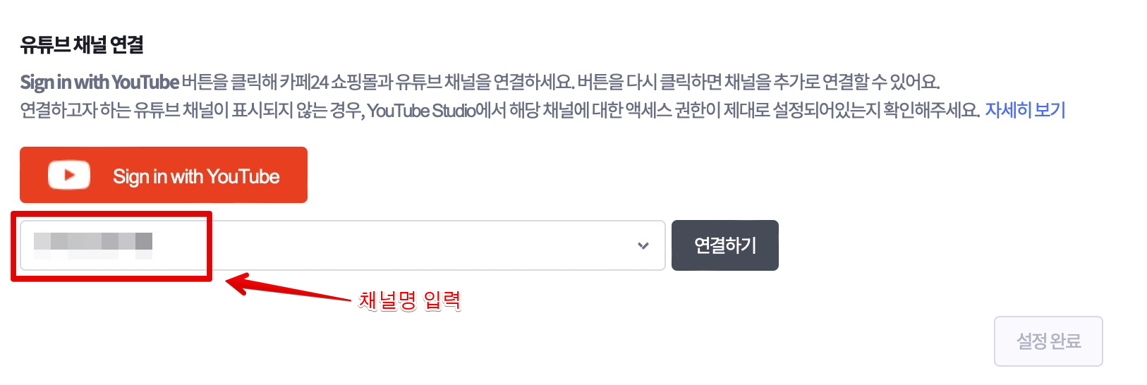 다음으로 유튜브 로그인을 통해 유튜브 채널을 연결해줍니다.