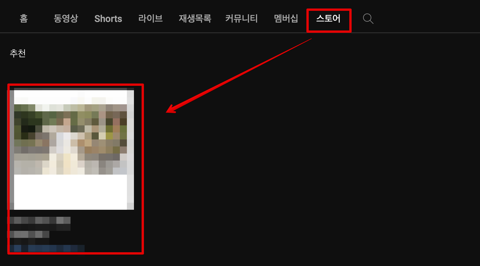 등록이 완료되면, 유튜브 채널에 [스토어] 탭이 생겨나며 여기를 클릭해보면 내가 연동해서 등록한 상품을 확인할 수 있습니다.