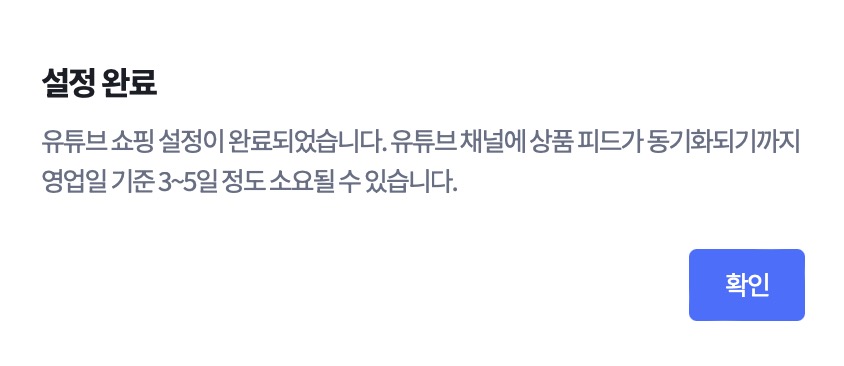 여기까지 하게 되면 카페24 쇼핑몰을 유튜브 쇼핑에 연동하는 모든 설정이 완료됩니다.