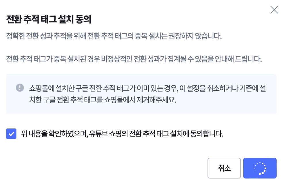 이후 구글 전환 추적 태그 설치에 동의해주면 됩니다.