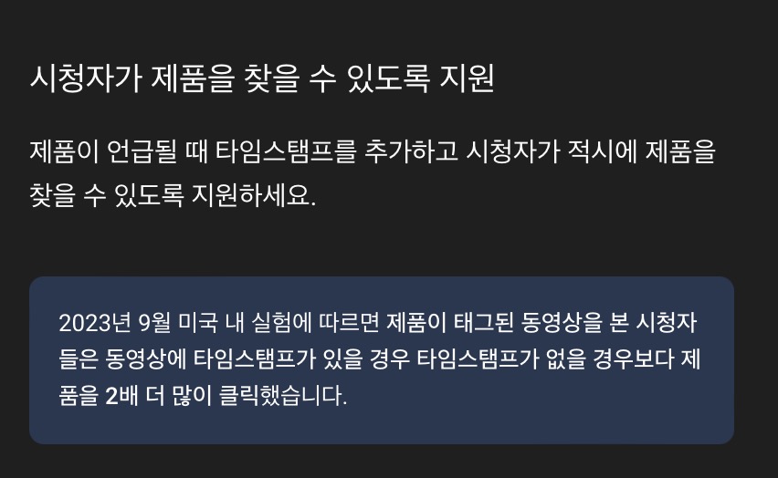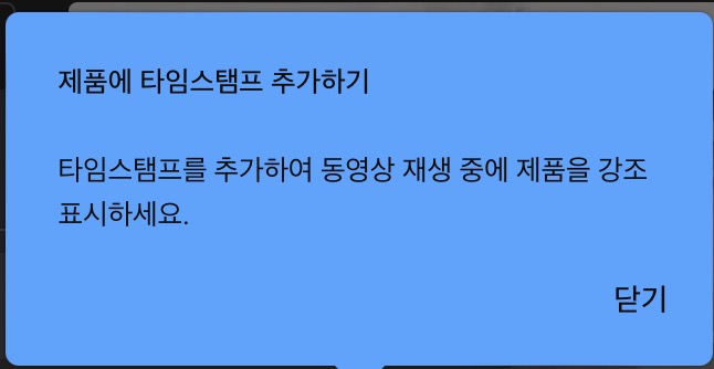 타임 스탬프의 경우 영상 시작 30초 이후 30초가 지난 시점에 추가할 수 있다고 합니다.