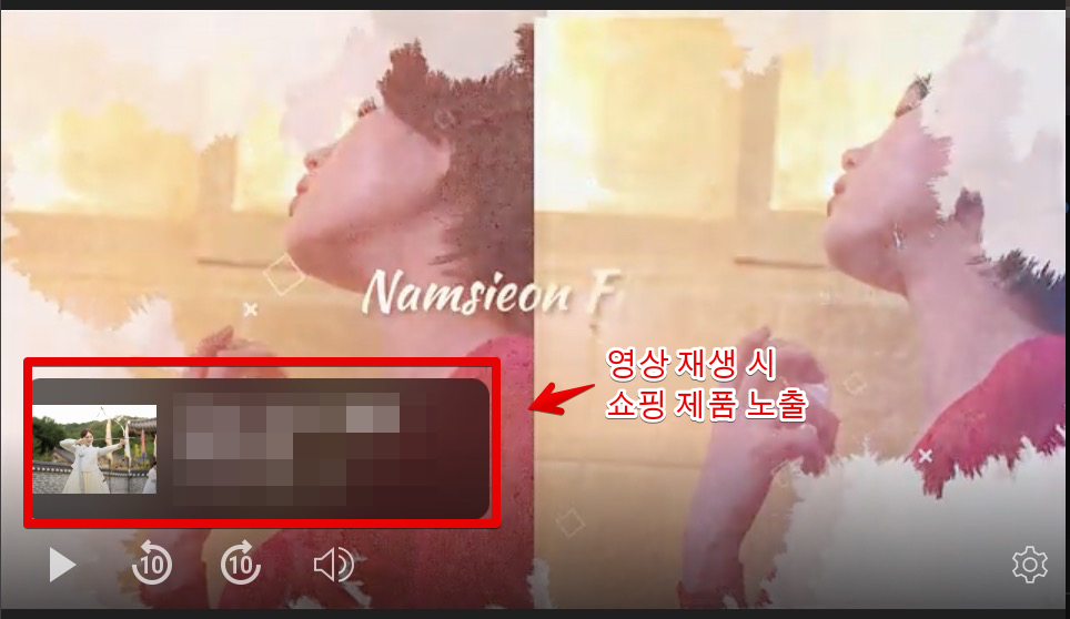 이제 유튜브 영상을 재생해보면 왼쪽 아래쪽에 영상 재생시 쇼핑 제품이 노출되는걸 볼 수 있습니다. (타임스탬프)