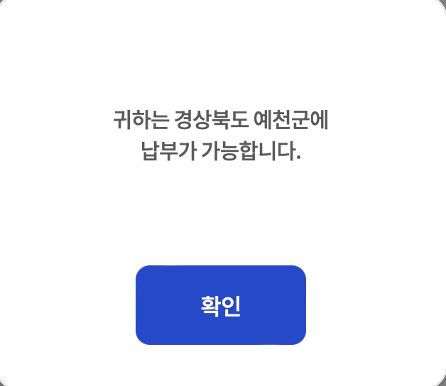 고향사랑기부제는 자기의 주소지가 아닌 곳에서만 기부를 할 수 있기 때문에 처음에 주소지를 입력하는 과정이 있고, 해당 지자체에 납부가 가능한지 체크하는 과정이 있습니다. 납부가 가능하다고 나오면 납부 할 수 있습니다.