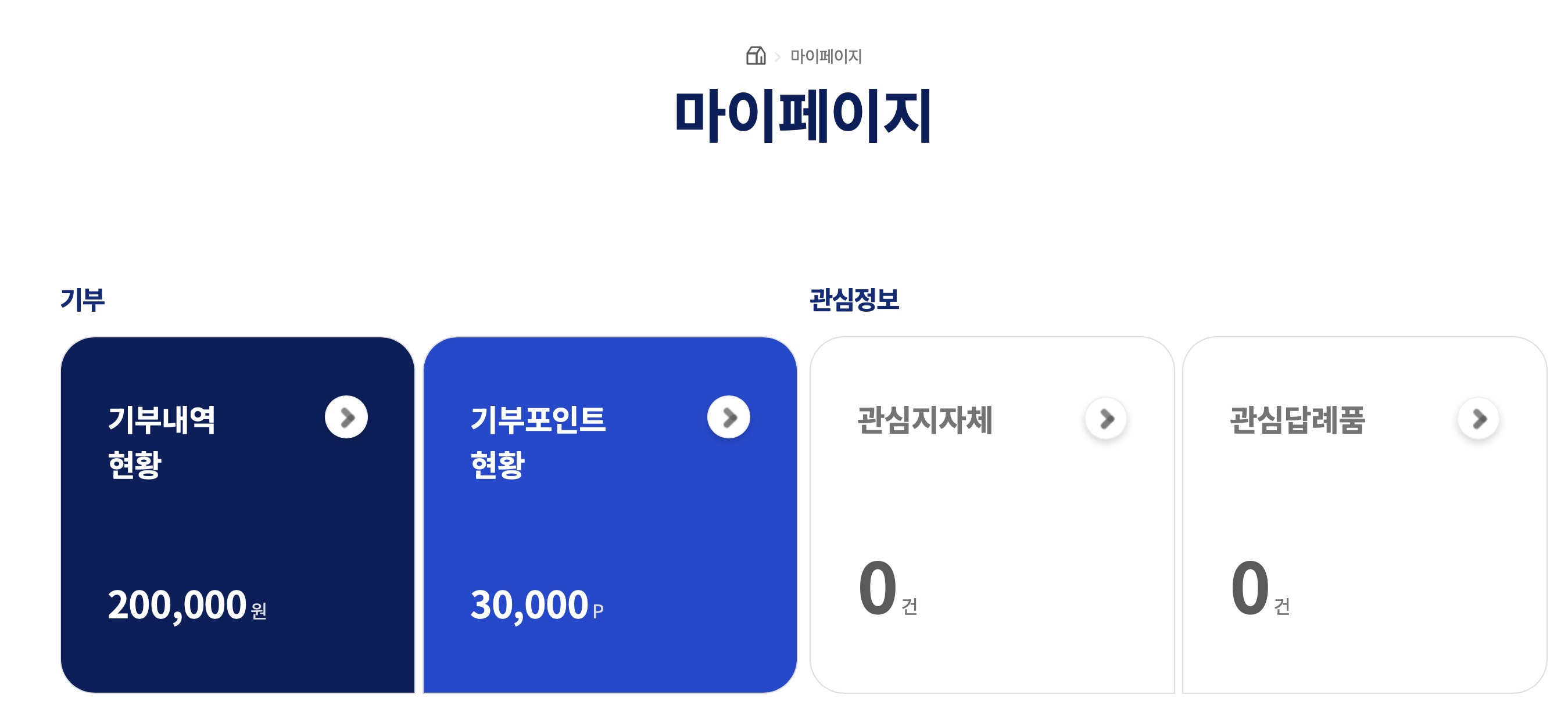 고향사랑기부제 홈페이지에서 마이페이지로 들어가보면 기부포인트 현황에 3만 포인트가 추가된 모습을 볼 수 있습니다.