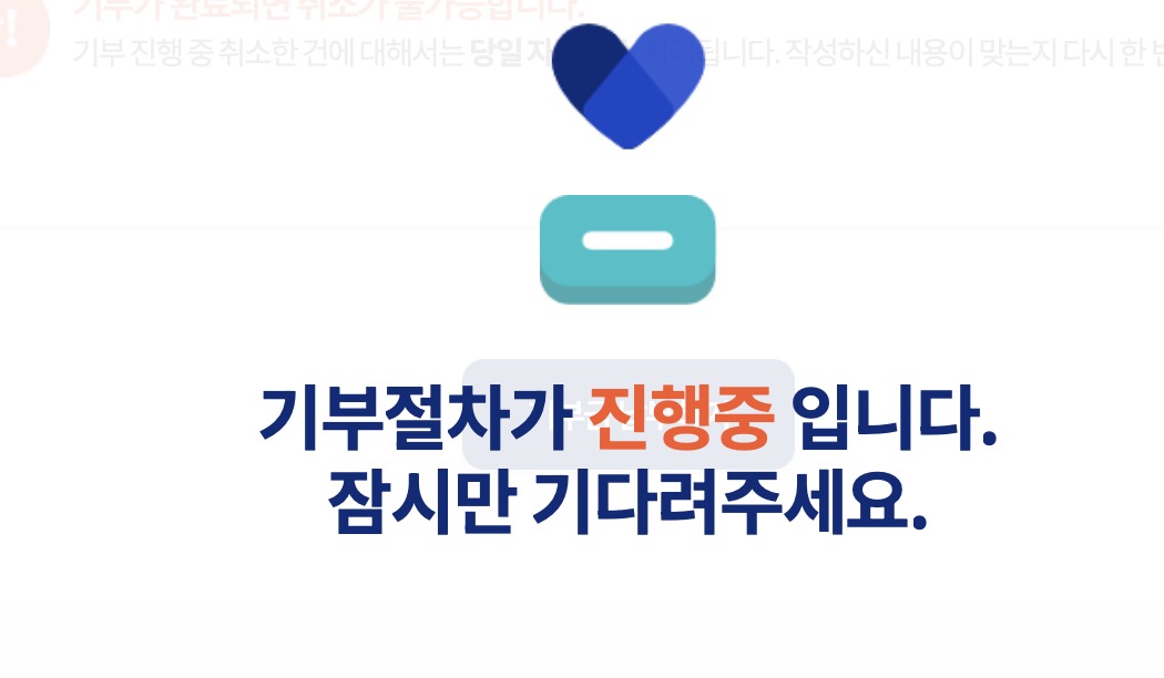 다음으로 기부절차가 진행중이라는 메시지가 나오고요.