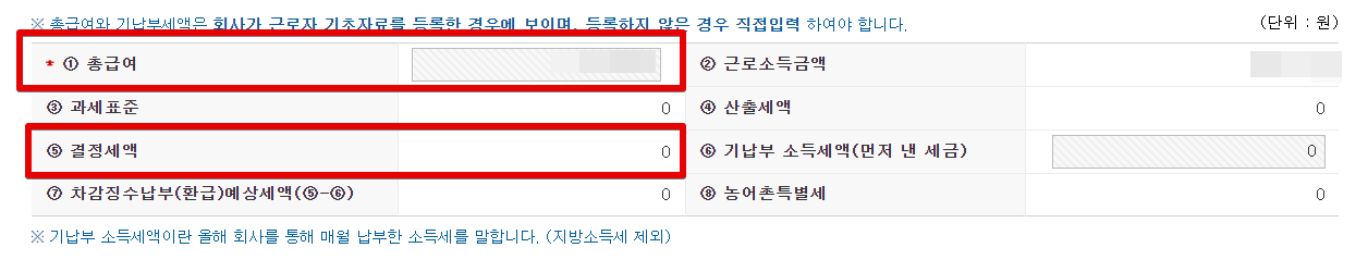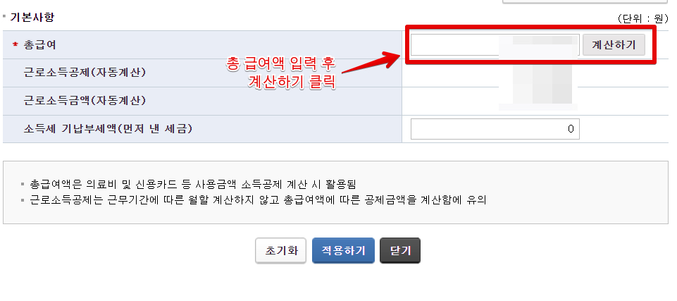 여기에서도 중요한건 총급여액을 정확하게 입력하는 것입니다.