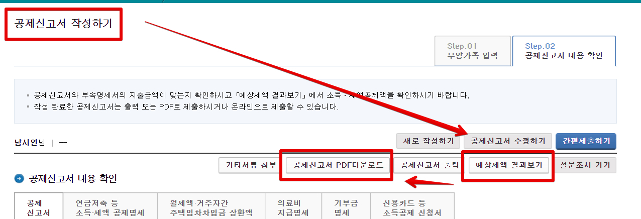 5. 공제신고서 작성하기 및 공제신고서 다운로드