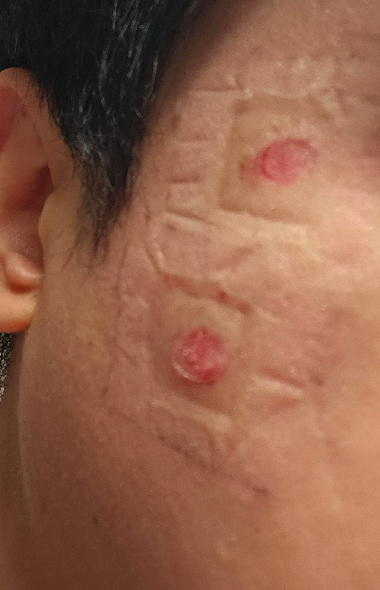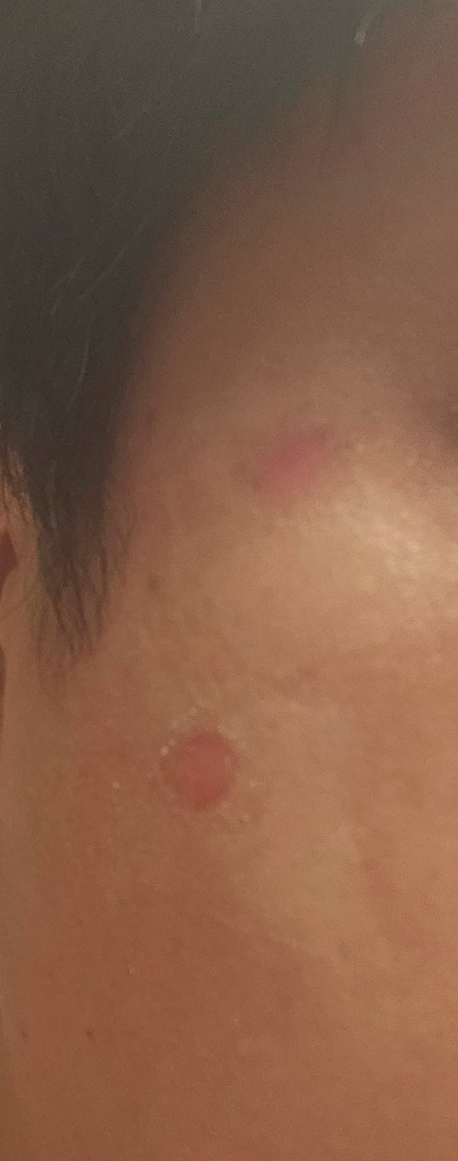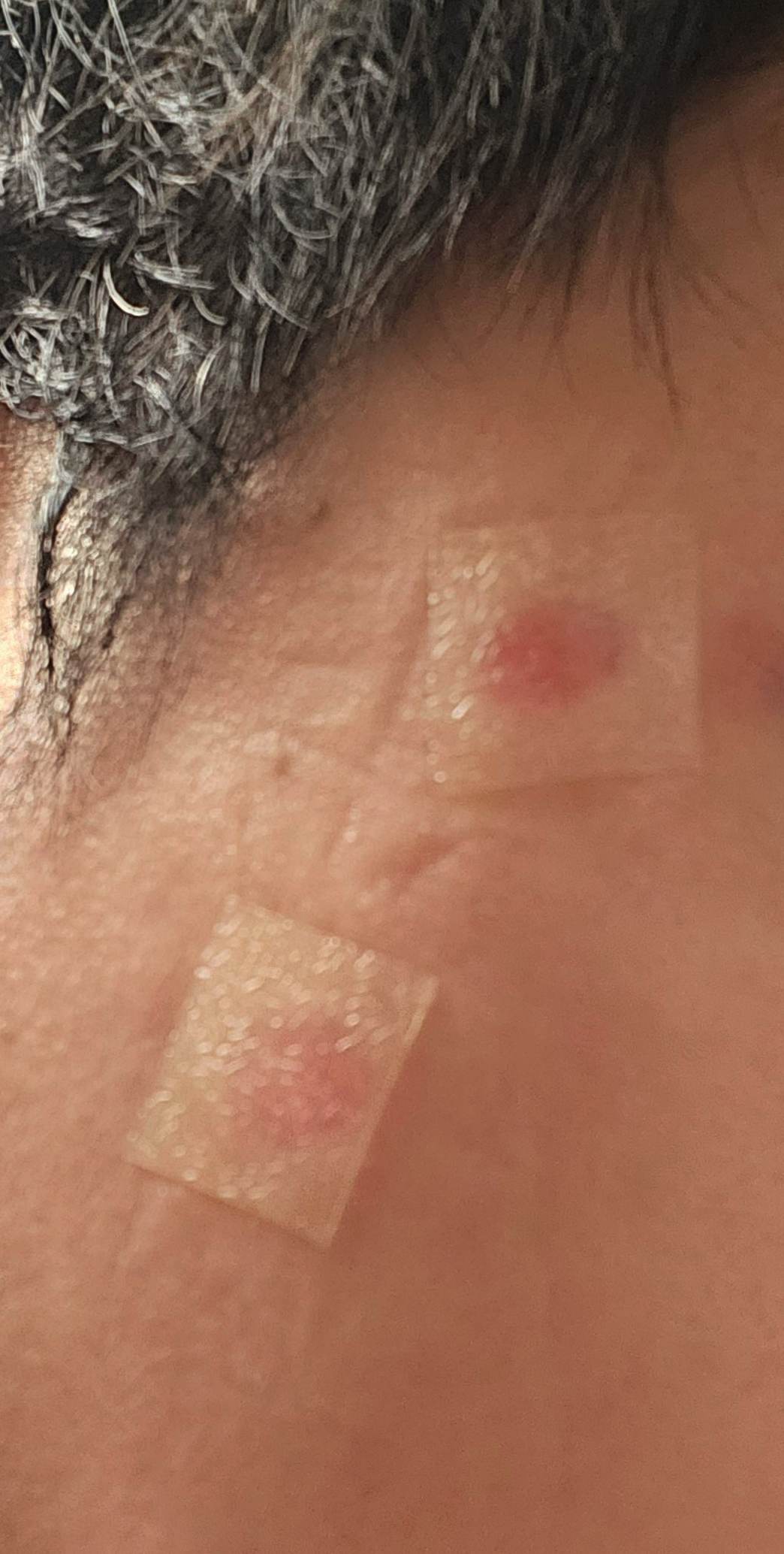 레이저 치료 후 3일 뒤 테이프를 제거했을 때 모습입니다. 검버섯은 없어지고 치료한 부위가 빨갛게 된 모습을 볼 수 있었어요. 테이프가 워낙 강하게 붙어서 3일동안 있었던터라 자국이 남아있었는데 저 자국이 의외로 오래가더라고요? 그래도 이때부터 세수도 마음껏 할 수 있고 샤워도 할 수 있어서 정말 개운했네요 ㅎㅎ