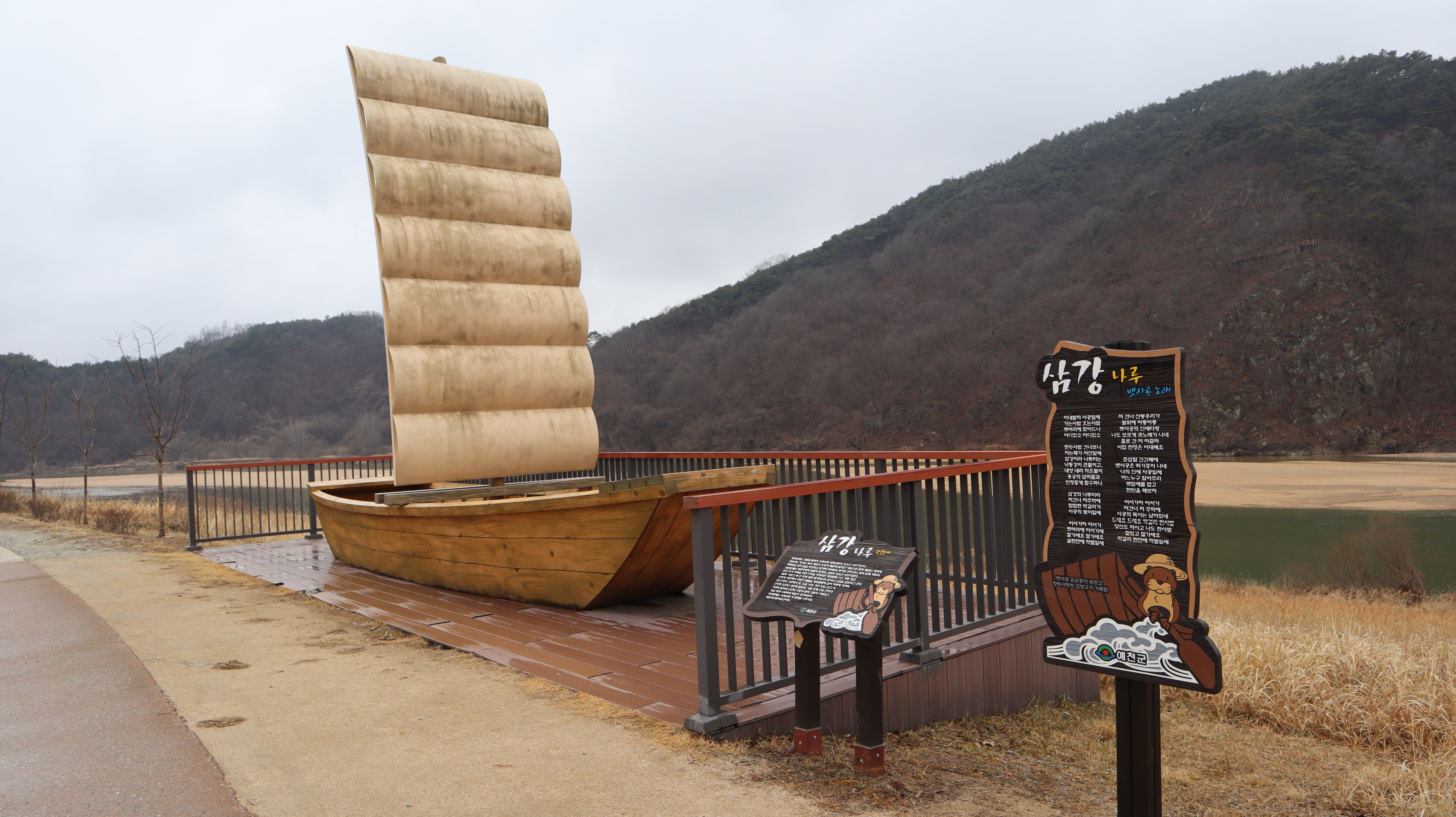 삼강나루터에 조성된 포토존과 오브제, 그리고 낙동강 주변 풍경이 고즈넉하니 예천 특유의 전통스러움이 잘 남아있습니다.