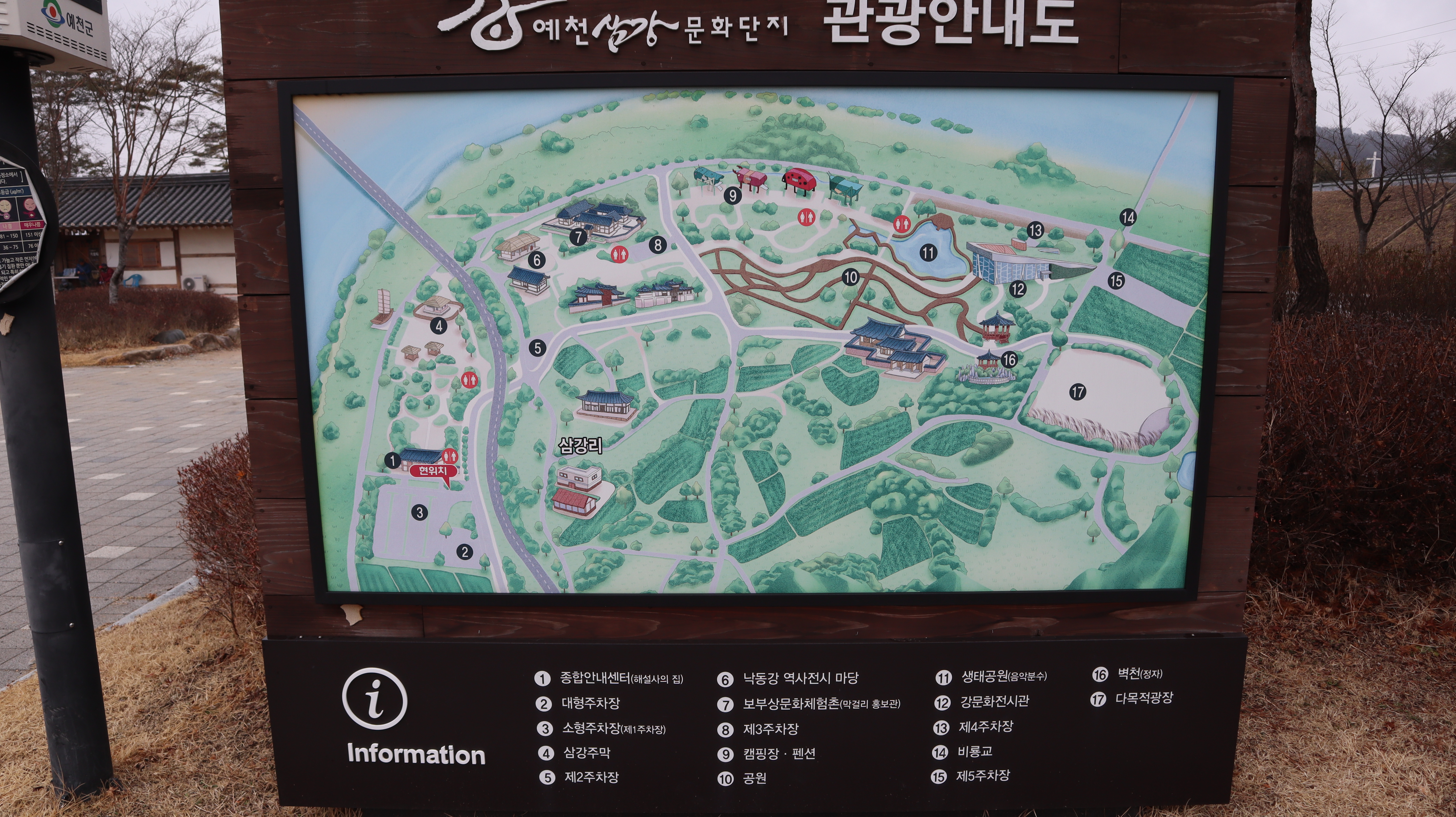 주차장쪽에서 예천삼강문화단지 관광안내도를 살펴보고 동선에 맞춰 이동하면 좀 더 효과적인 여행이 가능합니다.