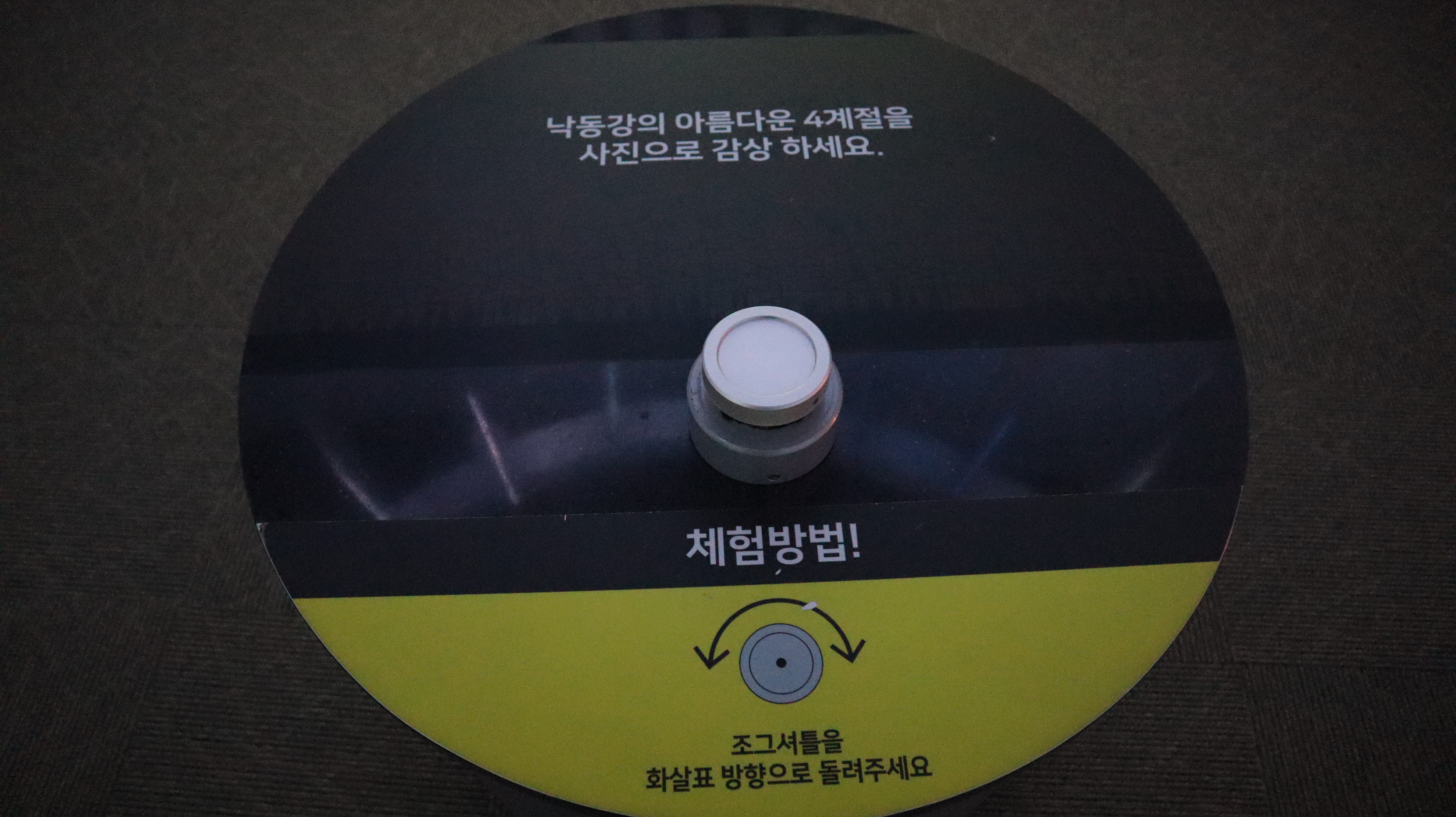 낙동강의 춘하추동을 살펴볼 수 있는 그래픽 공간이에요. 예쁘게 꾸며져 있고 조그셔틀을 돌려가면서 낙동강 유역의 다양한 강문화들을 살펴볼 수 있습니다.
