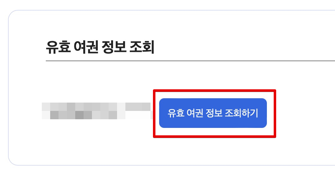 이제 아래로 내리면 유효 여권 정보 조회가 나타나는데 여기에서 [유효 여권 정보 조회하기]를 클릭합니다.
