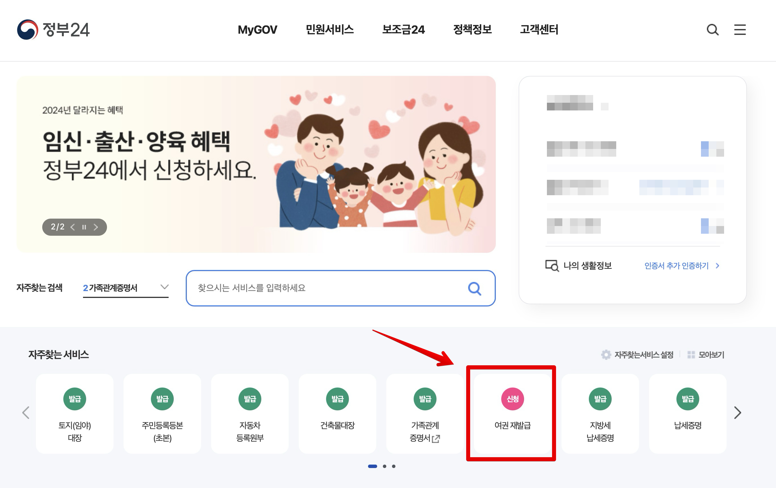 정부24 홈페이지에서 여권 재발급 신청하는 방법