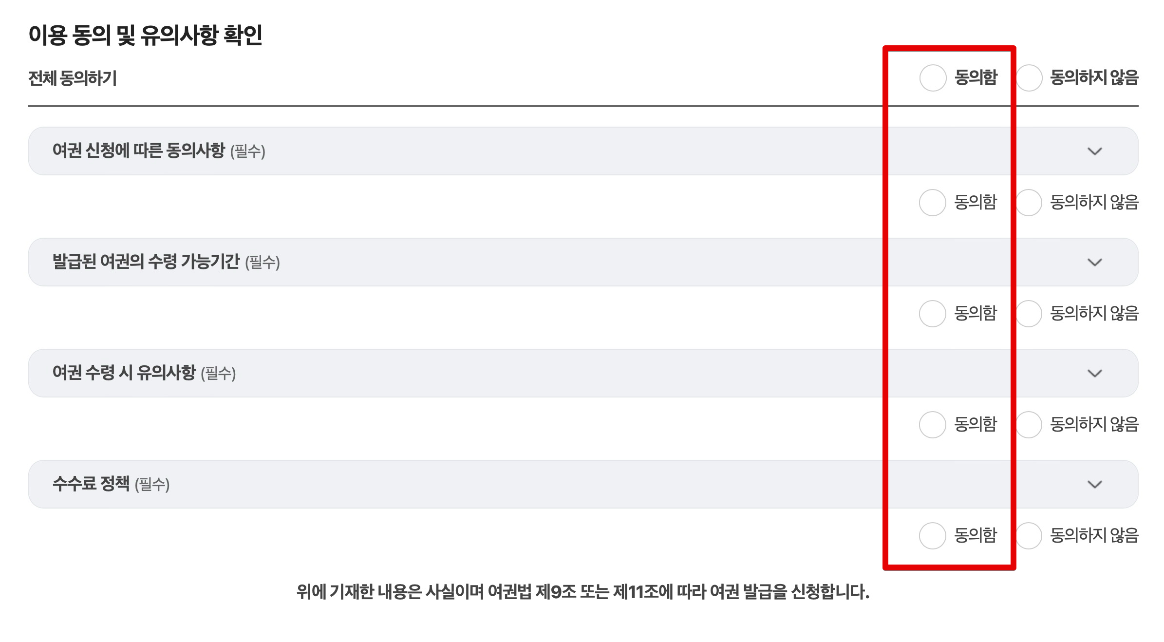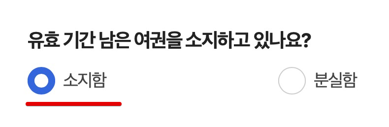 유효 기간 남은 여권을 소지하고 있나요?라고 물어보면 소지함으로 체크해줍니다.